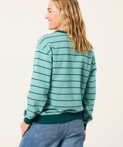 Fat Face Women’s Teal Blue Stripe Notch Neck Sweatshirt