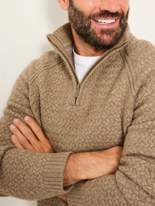 Fat Face Men’s Calder Dark Natural Half Neck Knitted Jumper | Dark Natural