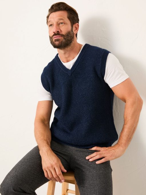 Stay stylish and cosy all day long in our Calder knitted tank, featuring a flattering crew neckline, a sleeveless shape and loose fit. Crafted from a soft fabric blend, this tank is comfortable and ready to wear with all your favourite outfits. Whether you need a light layer over a t-shirt or pairing with a staple pair of denim jeans for everyday wear, our Calder tank will be your new favourite cosy piece.Model is 6’1”/185cm and wears UK size M