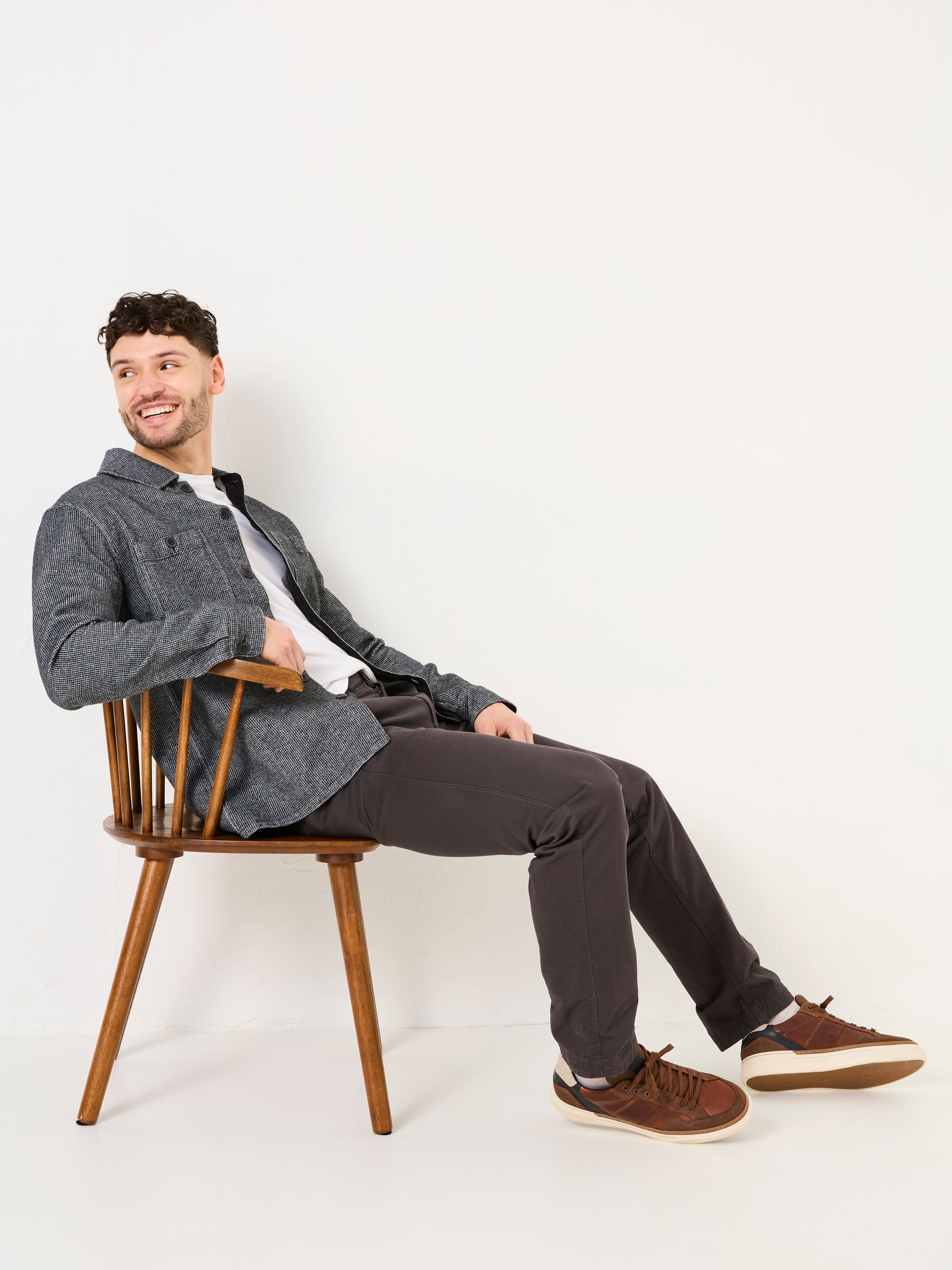 In a comfortable fit, our modern chinos are the smarter alternative to your overworked jeans. They come in a soft yet hard-wearing cotton with classic five-pocket styling, and are so easy to dress up or down. Keep them casual with a shirt and graphic T-Shirt, or team them with a V-Neck jumper for a smart evening look. Comfortable fit Breathable cotton Smarter styling 4-pocket designModel is 6’2”/188cm and wears UK size MRegular inside leg length 31" / 79cm.Long inside leg length 33" / 84cm.