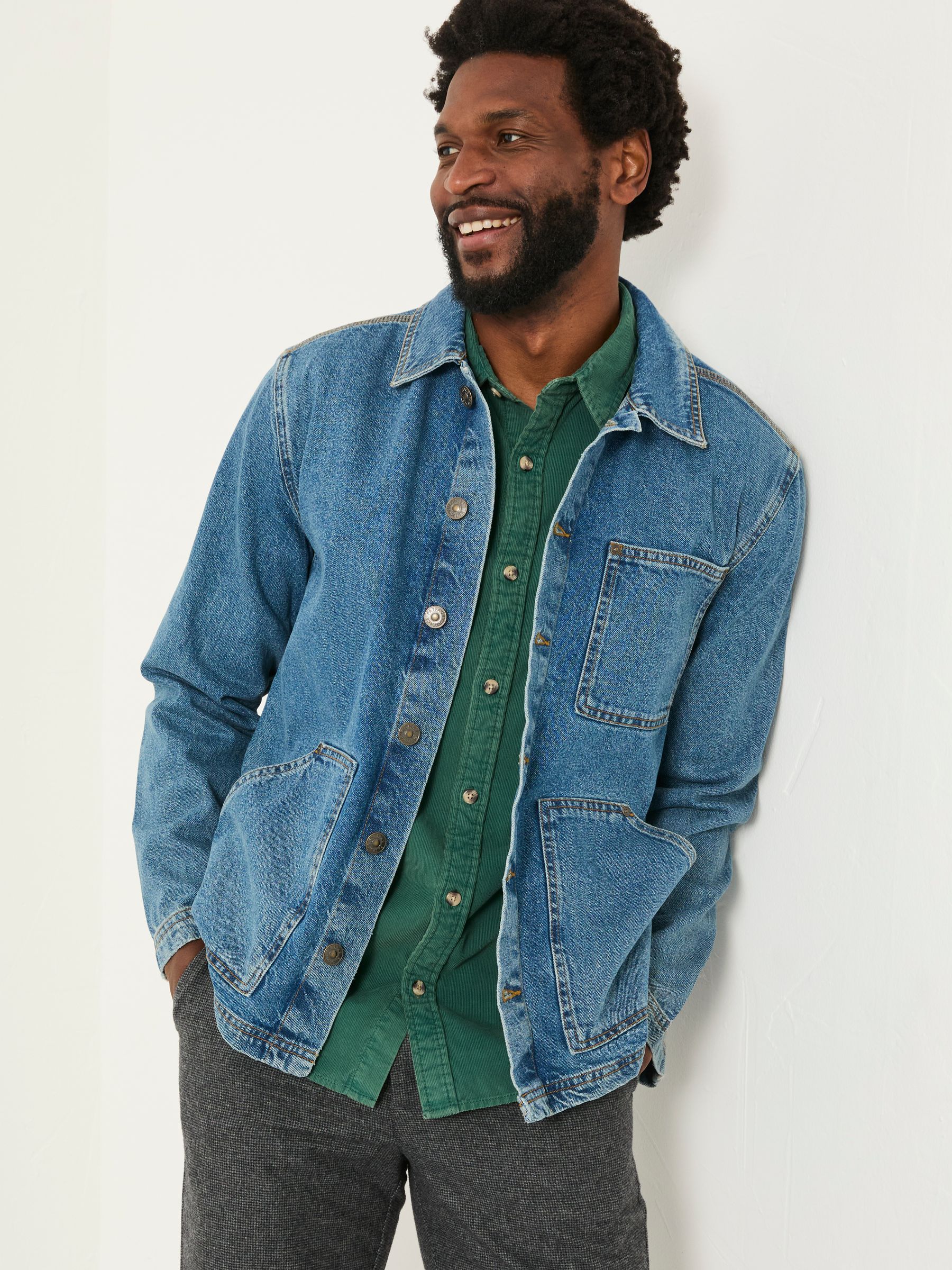 At FatFace, our jackets are designed for versatility and effortless styling for any occasion. Our denim worker jacket is the perfect embodiment of style, with large pockets to store all your essentials, a lightweight feel, and a stylish collar. It’s the ultimate seasonless staple to add to your wardrobe.Layer over a knitted jumper for those chillier days or throw it on over a t-shirt for a relaxed, layered look.Crafted from soft materials, it’s breathable and comfortable for all-day wear.