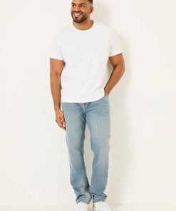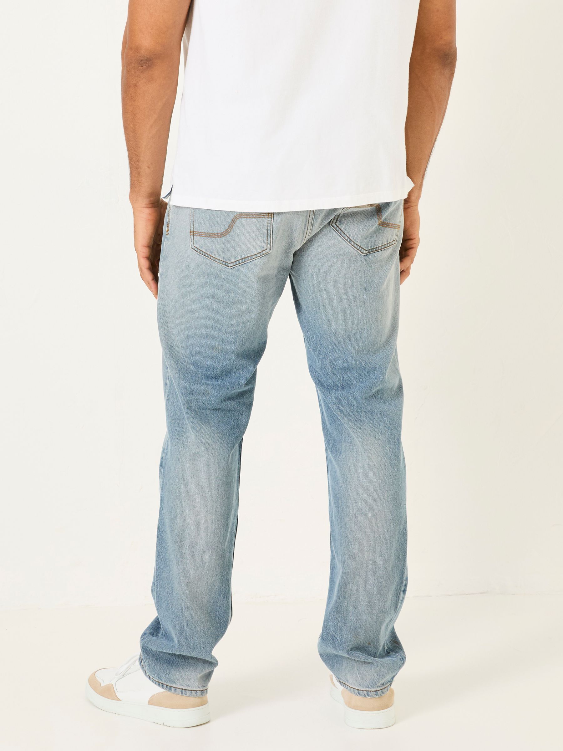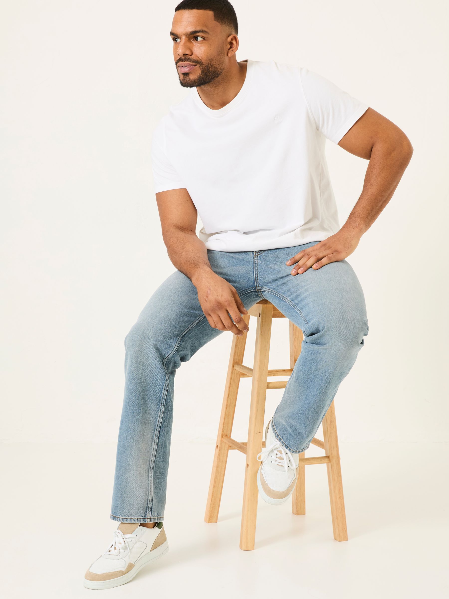 The classic straight cut. The fit is easier on the thigh with a straight fit down to the ankle, making these a comfortable yet stylish option.We’ve washed them before they get to you for an authentic look. Whether you’re chilling on the weekend or heading into the office on Monday, you can be confident these light vintage jeans are up to the challenge.Easy on the thighStraight fit to ankleZip & button flyMeasurements and model information:Model is 6ft 1”/185cm and wears UK size 32 LongModel is 6ft 3”/191cm and wears UK size 38 Regular