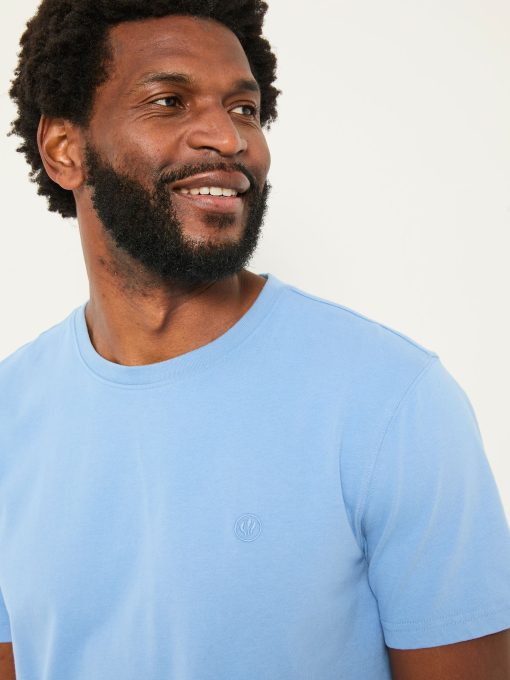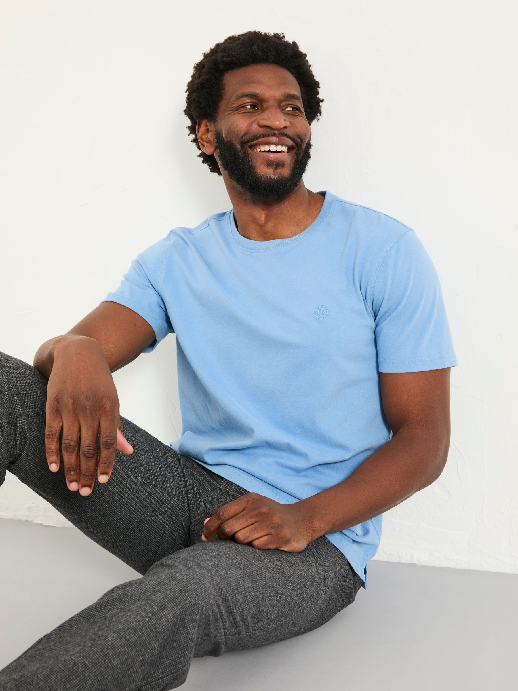 Our Lulworth crew neck Chambray Blue T-Shirt has been a favourite for years, playing the role of the wardrobe staple.Whether you’re using it as a basic layer in the winter or pairing it with shorts in the summer, it’s got you covered in soft cotton and a comfortable fit.Model is 6ft 1”/185cm and wears UK size M.