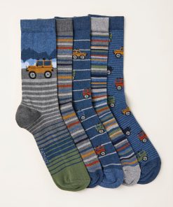 5 x Sock 1&5 77% Cotton, 22% Nylon, 1% Elastane. Sock 2 70% Cotton, 29% Nylon, 1% Elastane. Sock 3 78% Cotton, 20% Nylon, 2% Elastane. Sock 4 71% Cotton, 28% Nylon, 1% Elastane.Machine washable.