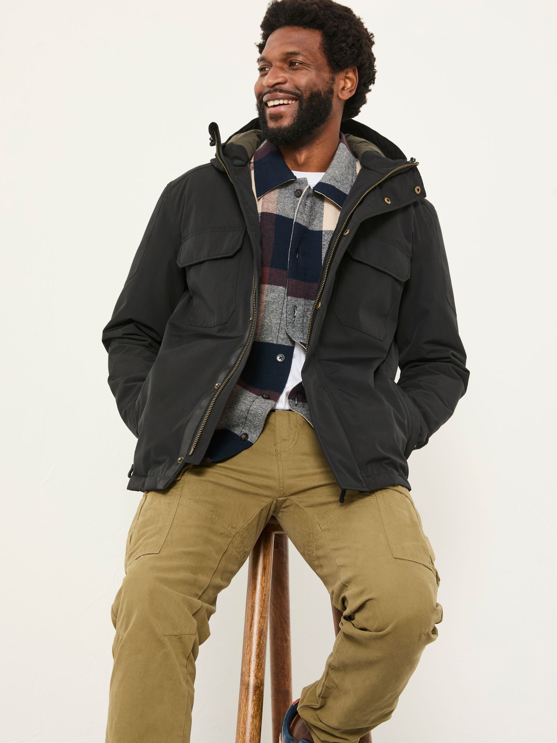At FatFace, our jackets are designed for versatility and effortless styling for any occasion. Our Truro hooded jacket is the perfect embodiment of practicality and style, with large pockets to store all your essentials, a lightweight feel, and a comfy fleece lining. It’s the ultimate seasonless staple to add to your wardrobe. Layer it over a knitted jumper for those chillier days or throw it on over a t-shirt for a relaxed, layered look with the adjustable popper cuffs. Crafted from soft fabrics, it’s breathable, and comfortable for all-day wear.Regular centre back neck to hem 30" / 76cm.