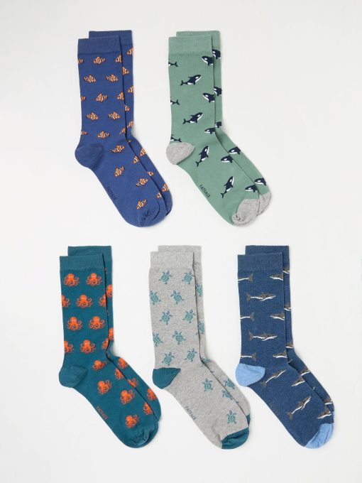 Sock 1 67% Cotton, 31% Nylon, 2% Elastane. Sock 2 61% Cotton, 37% Nylon, 2% Elastane. Sock 3 59% Cotton, 39% Nylon, 2% Elastane. Sock 4 62% Cotton, 36% Nylon, 2% Elastane. Sock 5 63% Cotton, 35% Nylon, 2% Elastane.Machine washable.