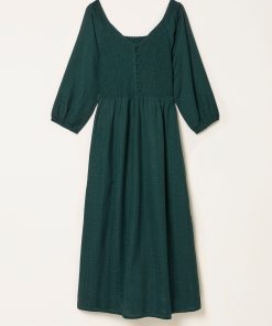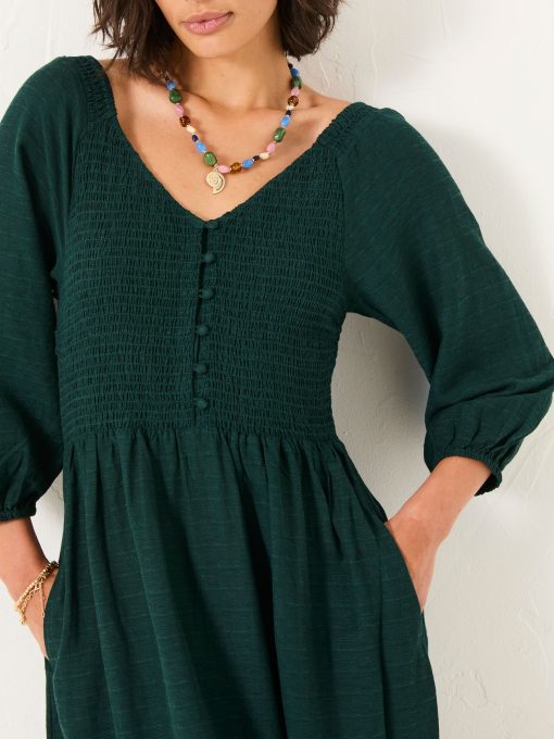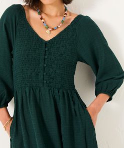 Our beloved Adele dress is back and better than ever – now featuring a flattering V-neckline on one side and a classic square neckline on the other, so you can wear it your way. Thoughtful button details add a polished touch, while side pockets, soft elasticated sleeves, and a gently structured bodice keep the ease and elegance you’ve always loved. From workdays to weekends, just add a jacket and your favourite footwear – now available in a fresh range of beautiful colours.Model is 5’9”/175cm and wears UK size 8Regular side neck to hem 50.5" / 128cm.