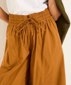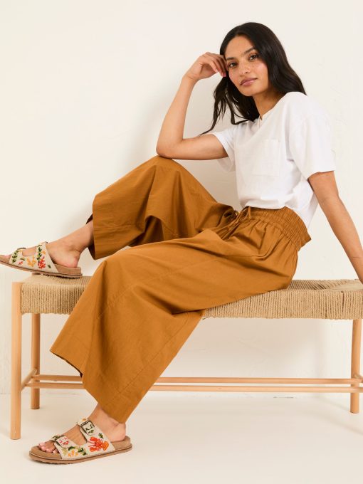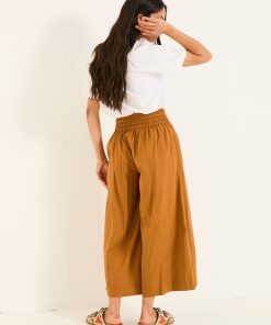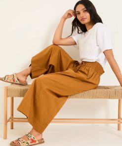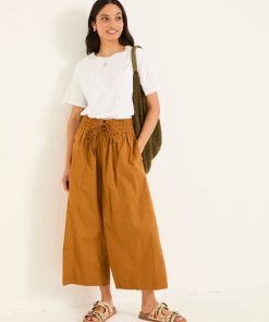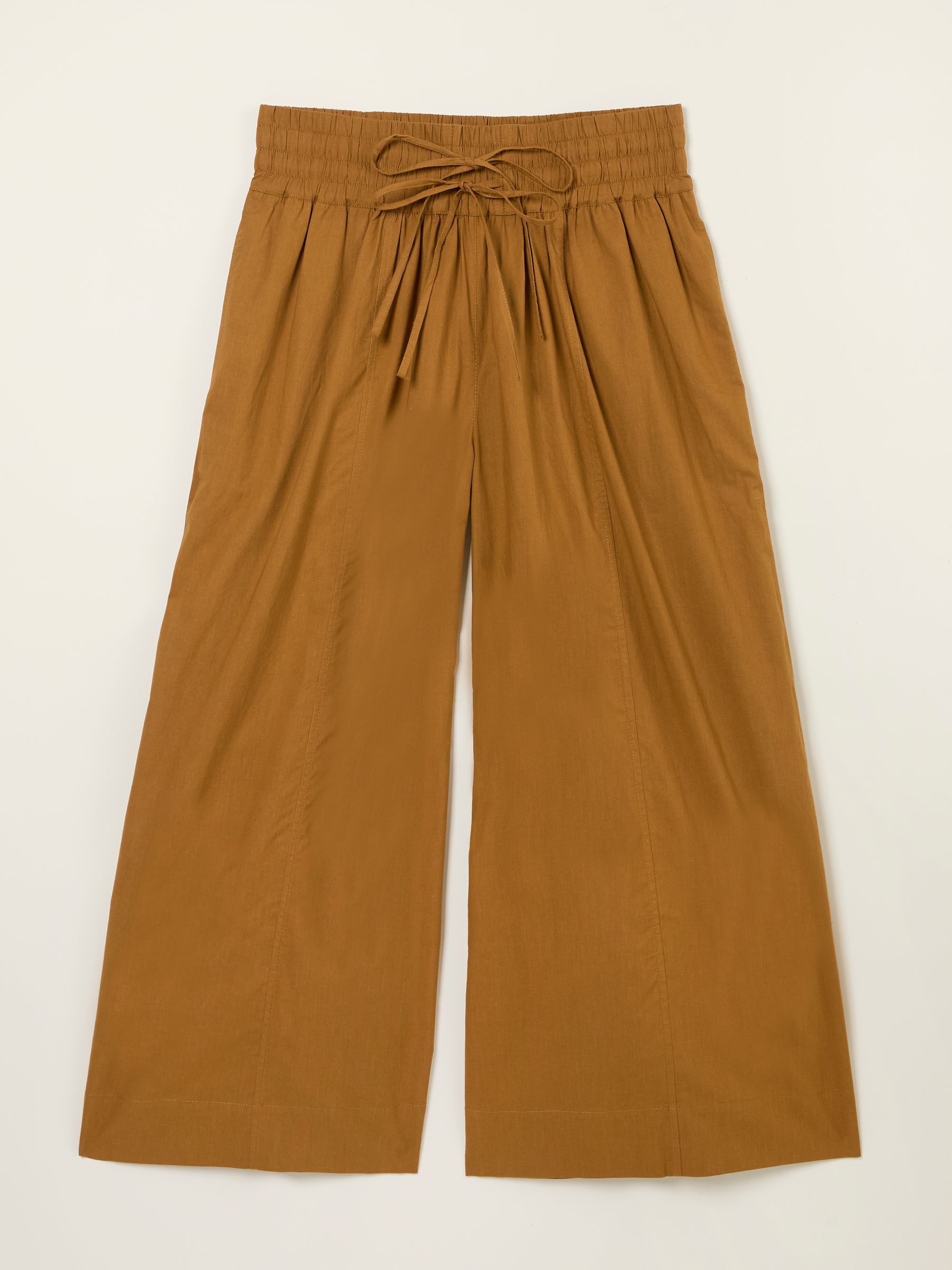 Effortlessly stylish and endlessly versatile, our tan brown wide-leg cropped trousers are a wardrobe staple. With a relaxed fit and a flattering cinched waist, they’re perfect for any occasion, finished off with bow detailing for that touch of femininity. Made from cotton, they’re lightweight, breathable, and the ultimate choice for all-day comfort. Pair them with a simple tee and sandals for laid-back vibes or dress them up with a blouse and heels for a chic, polished look.Short inside leg length 20" / 51cm.Regular inside leg length 22" / 56cm.Long inside leg length 24" / 61cm.