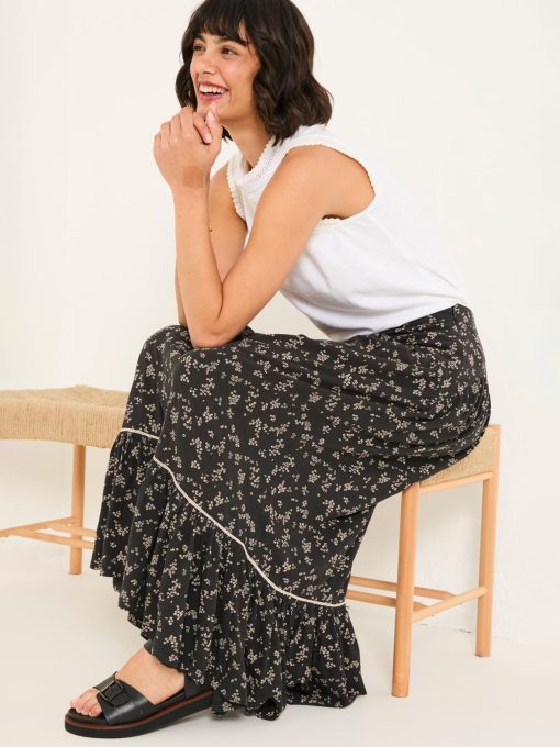 Stand out in style with our Aurielle maxi skirt. Made from soft fabrics, this skirt is comfortable and breathable, ideal for dressing up or down. With a dainty floral design, a flattering shape and length and a soft feel, it is the perfect transitional piece for your wardrobe. Wear on office days with tights and a blouse or to evening drinks with heels, this skirt is easy to style and look good in.Regular waistband to hem 37.5" / 95cm.
