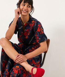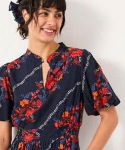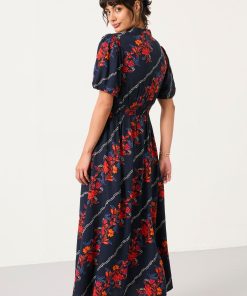 The Becky Midi Dress is the perfect dress to elevate your wardrobe. Featuring a flattering midi length, a stunning floral design, a v-neck shape and short, puffed sleeves, it is versatile and practical all while being made from soft fabrics, keeping it breathable and comfortable for everyday wear. Pair with trainers and a cardigan for a more casual, everyday look, wear with boots and tights for those chillier days or style up with heels and jewellery for your weekend plans.Model is 5’9”/175cm and wears UK size 8 LongRegular side neck to hem 49.5" / 126cm.