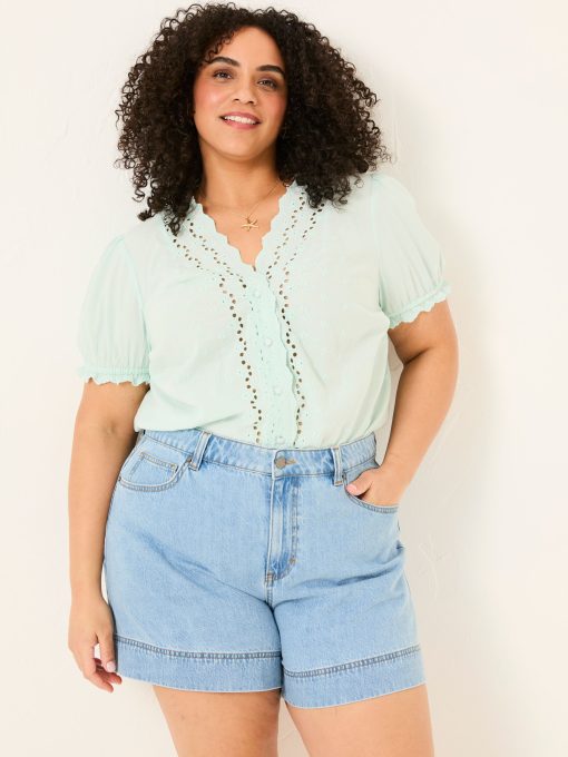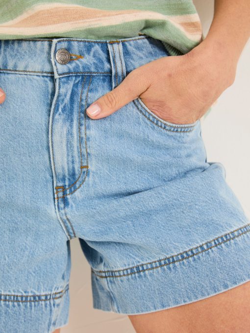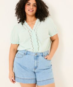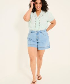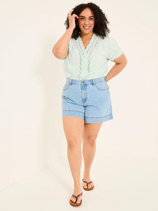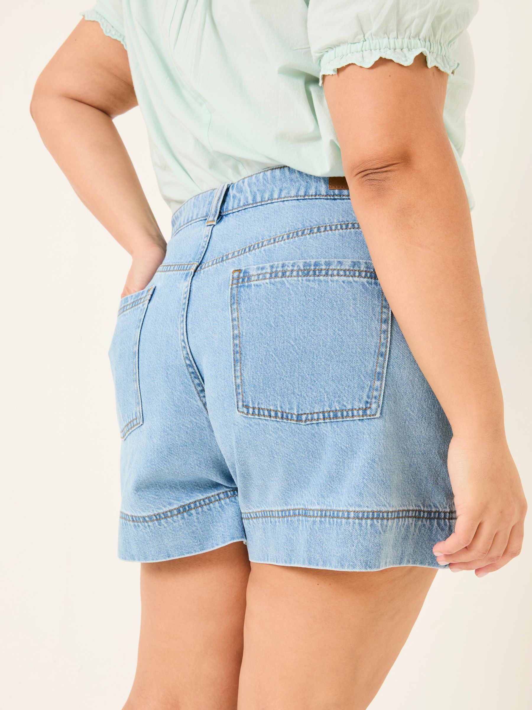 Keep it classic with our denim shorts, crafted from 100% cotton for a comfortable fit that gets better with every wear. Breathable and versatile, they’re perfect for sunny days, weekend adventures, and laid-back lounging. Keep it casual with a top and trainers or elevate the look with a blouse and sandals – your go-to summer staple.Model is 5’8”/173cm and wears UK size 18Regular inside leg length 5.5" / 14cm.