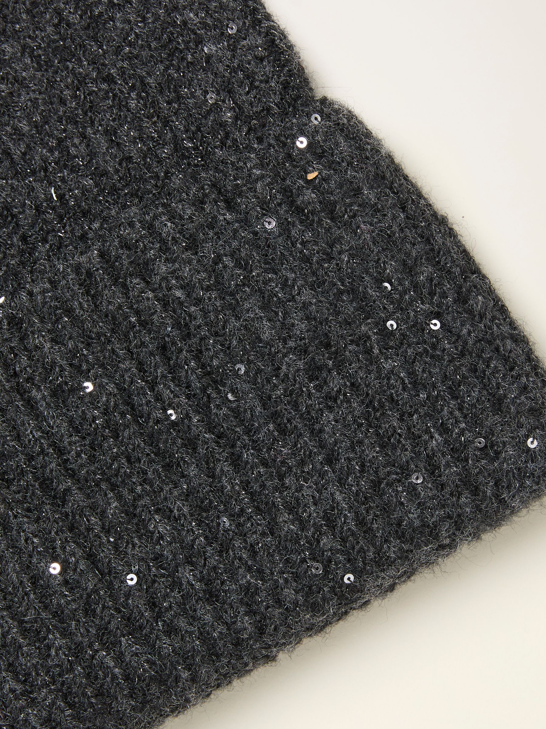 77% Recycled polyester, 11% Acrylic, 10% Metallised fibre, 2% Elastane.Machine washable.