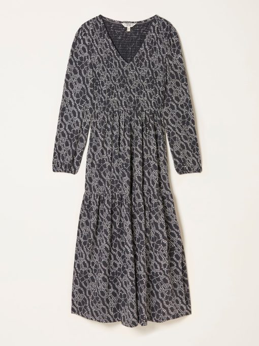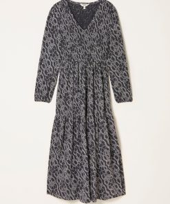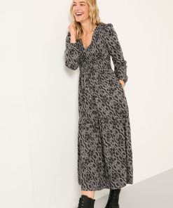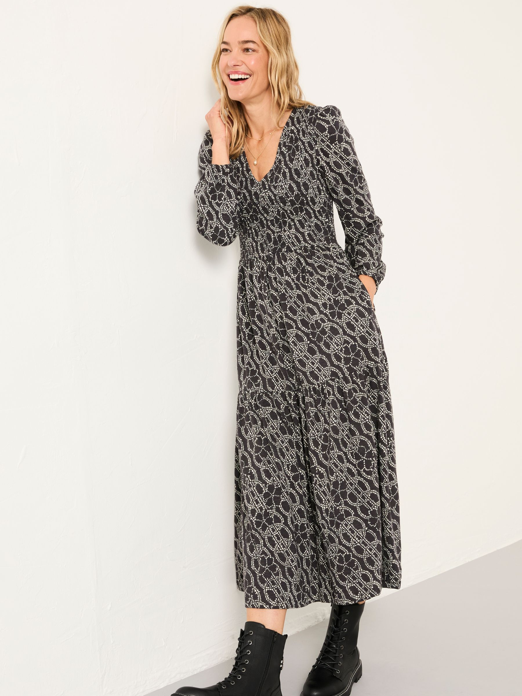 The Danielle midi is a perfect dress for all seasons – wear it with boots and a cardi on chillier days or wear solo with some trainers for weekend coffee runs. Made with cuffed long sleeves, a flattering v-neckline and a soft, comfy fabric, it also has pockets for everything you need to take with you. The gorgeous print is perfect to elevate your dress rotation.Model is 5’9”/175cm and wears UK size 8 RegularRegular side neck to hem 47" / 119cm.