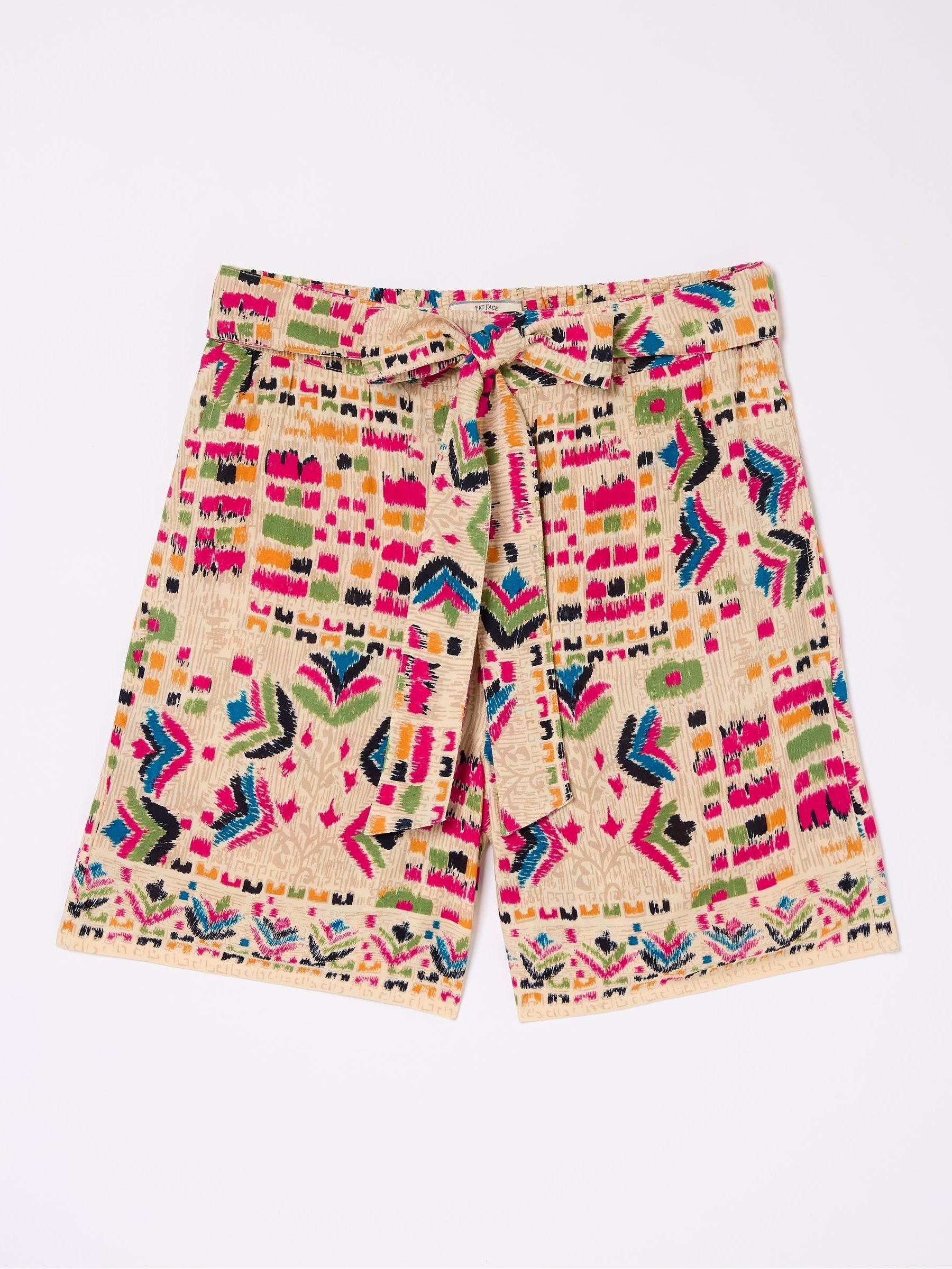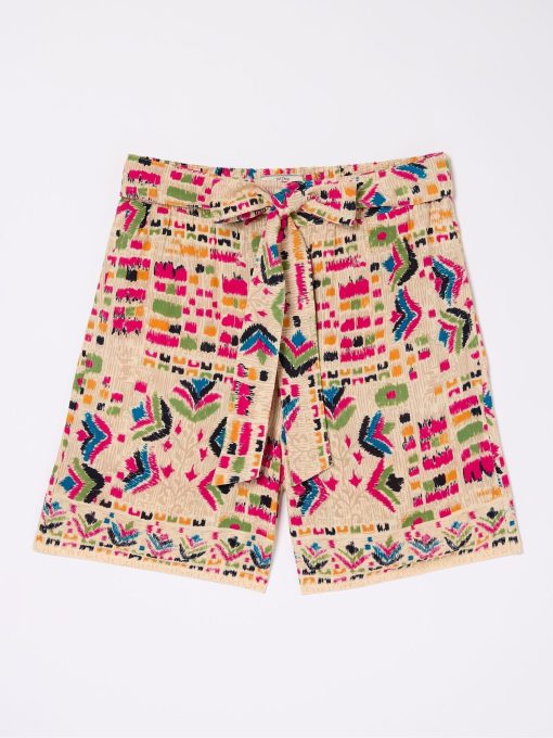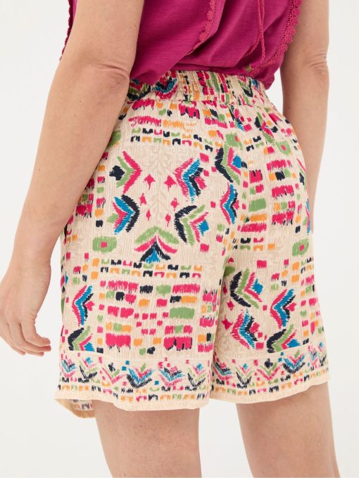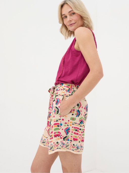 Taking inspiration from the flora and fauna of far-flung destinations, our Faye trail marks shorts are the perfect addition to your summer wardrobe. These shorts are made with 100% LENZING™ ECOVERO™ Viscose which is soft, stretchy and a more responsible fabric.With an elasticated waistband with a tie, these shorts have a stunning visual texture which is juxtaposed with the bright print that plays out across them. Finished with side pockets, they can be styled with anything from sandals to trainers.
