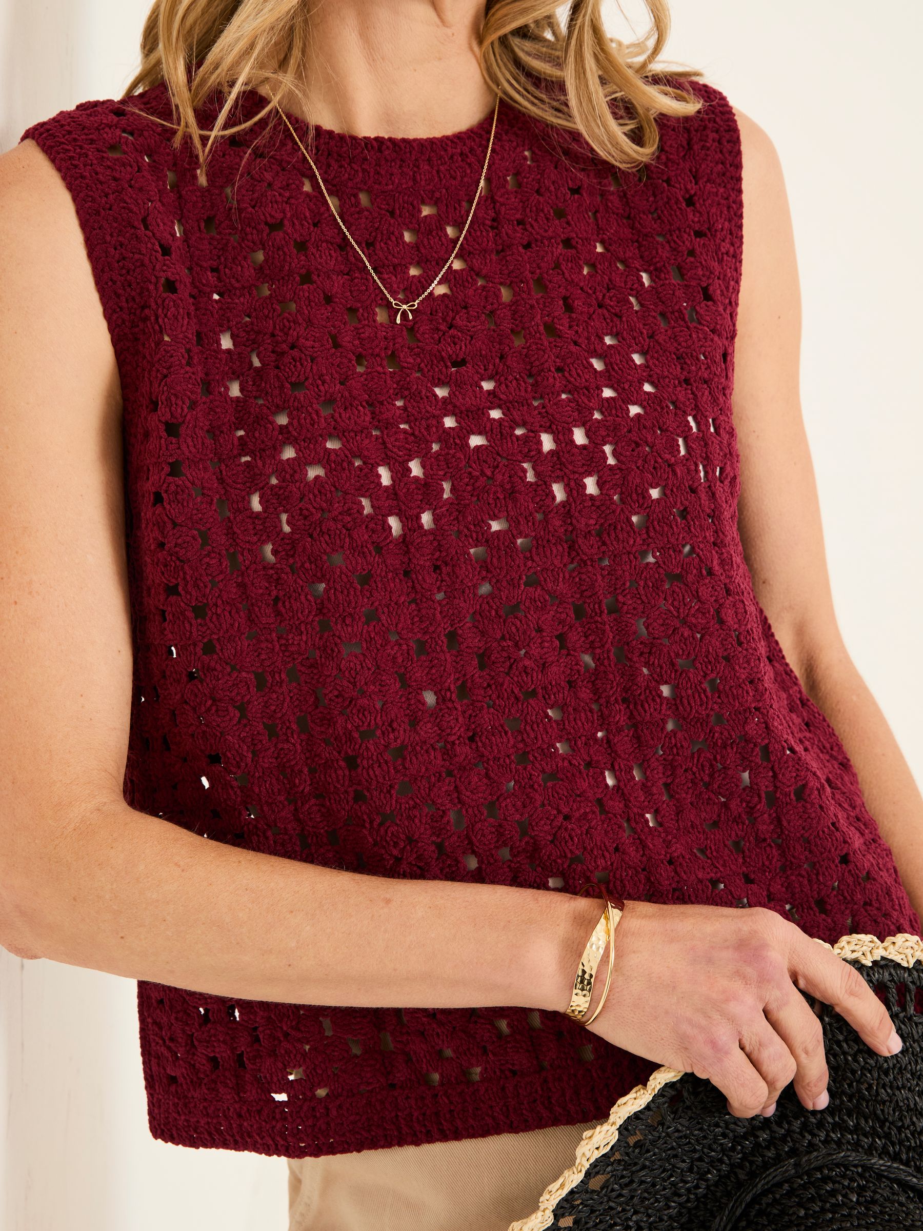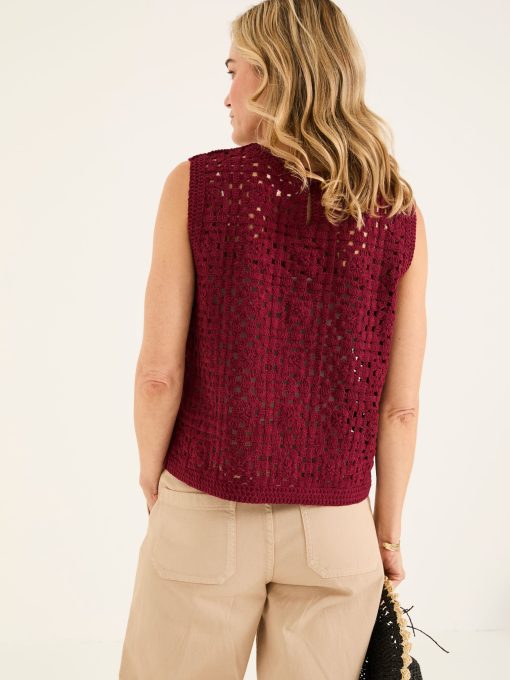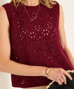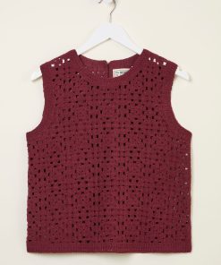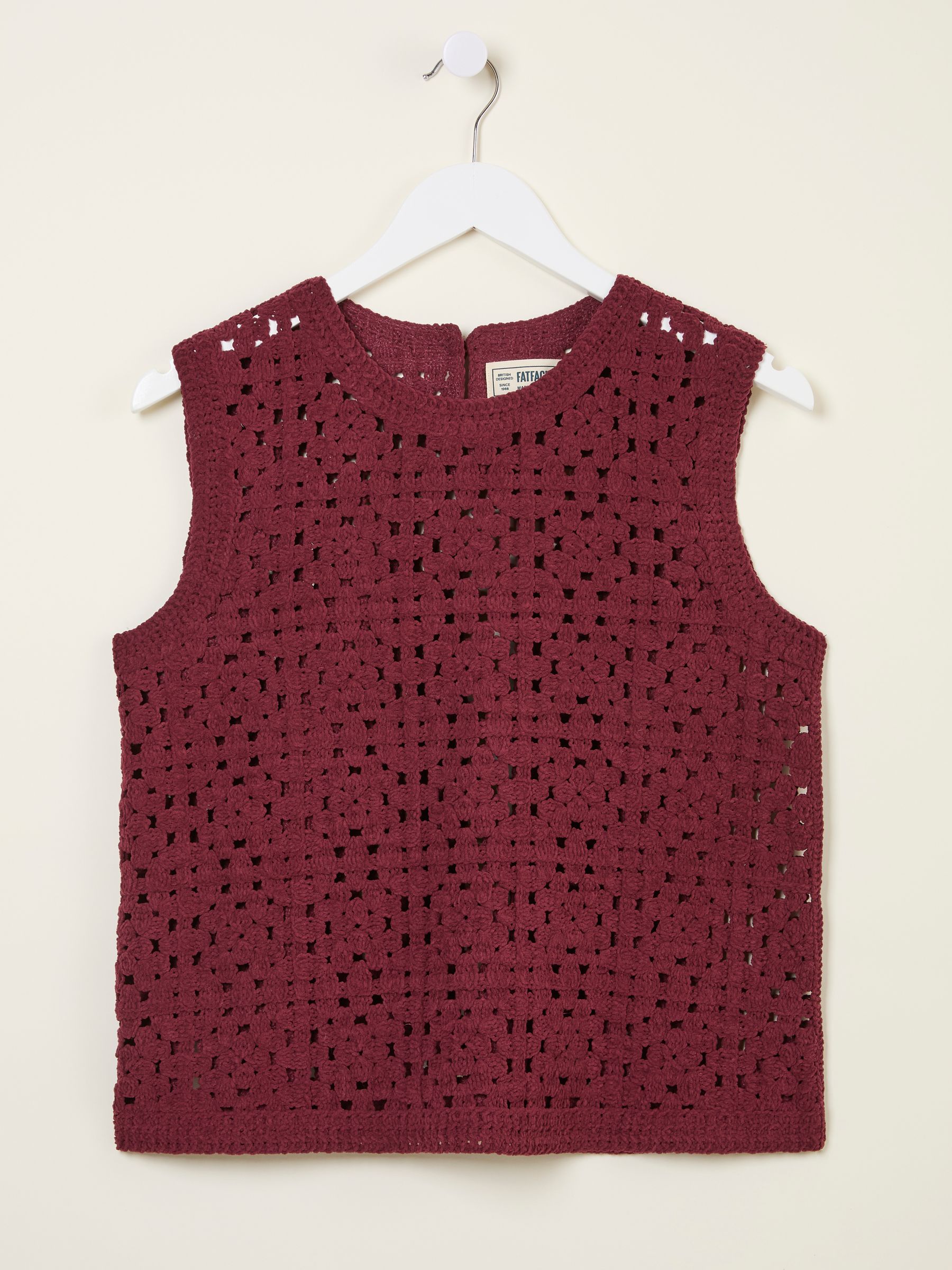 Crochet is the ultimate trend piece this season and our Finch knitted crochet tank does the job. In a gorgeous burgundy colour, it features a timeless and flattering tank shape with gorgeous crochet detailing. Made from soft fabrics, this tank is perfect for layering with a t-shirt underneath or wearing solo with your favourite jeans.Model is 5’9”/175cm and wears UK size 8