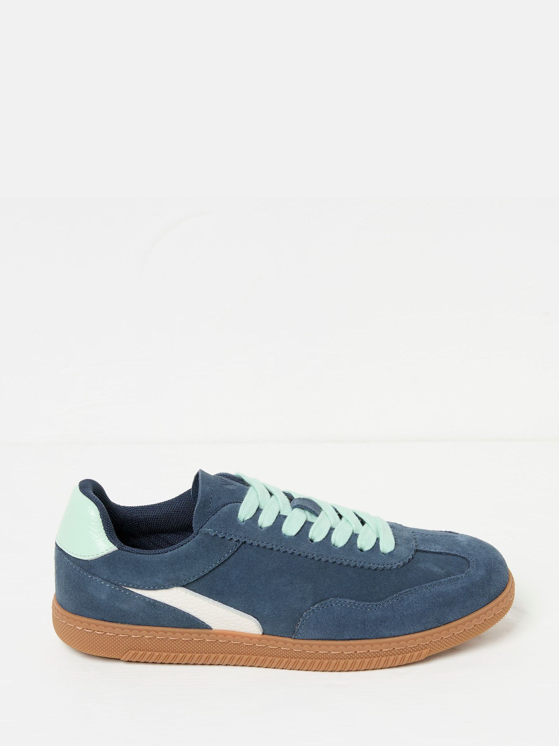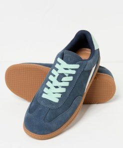 Step into your day in our Navy Fia retro trainer, perfect for adding a relaxed touch to your outfits. Made from leather and suede with a rubber sole, these shoes will provide you with comfort and support for your daily steps. Wear with jeans for a weekend coffee.