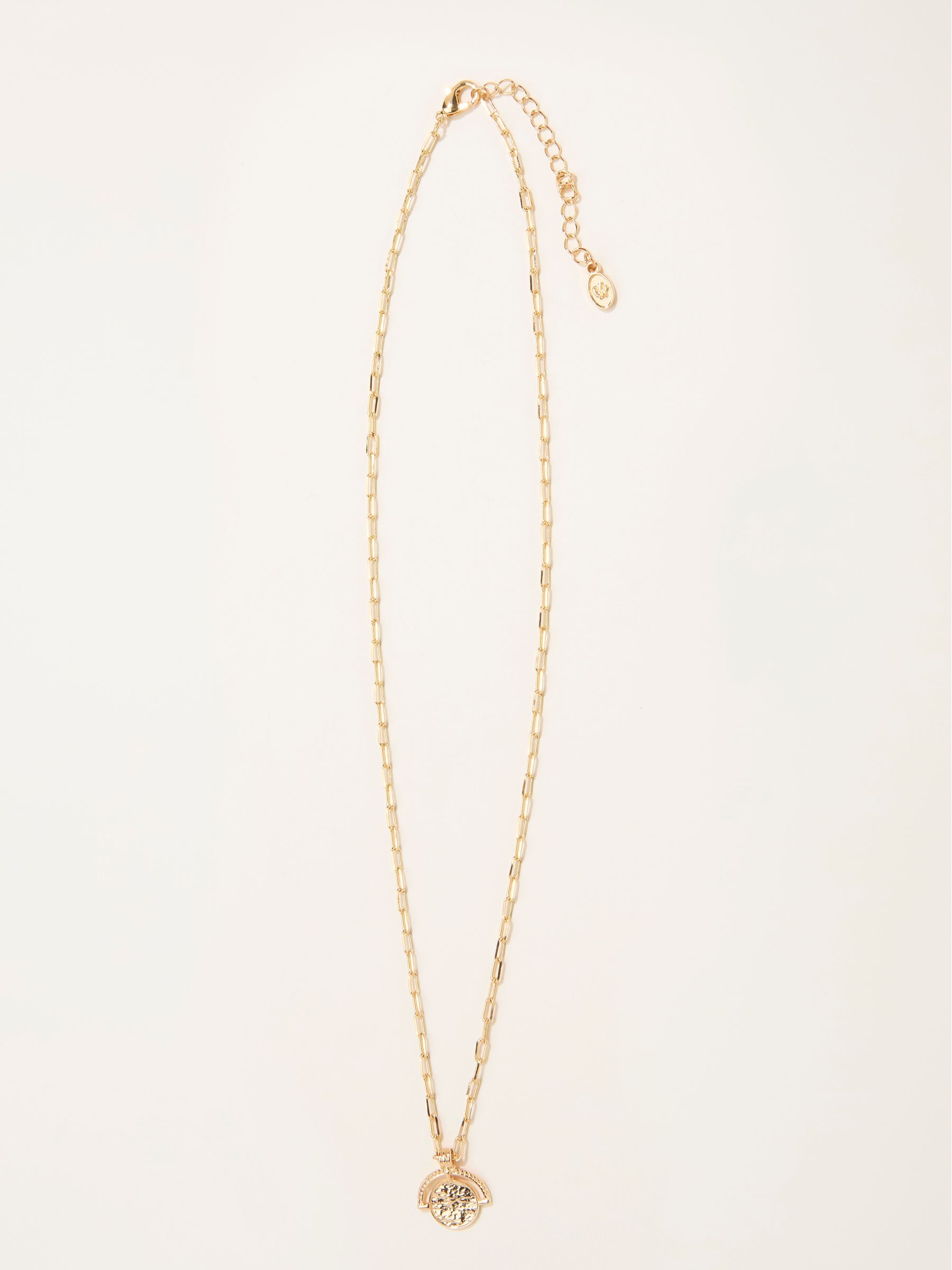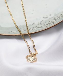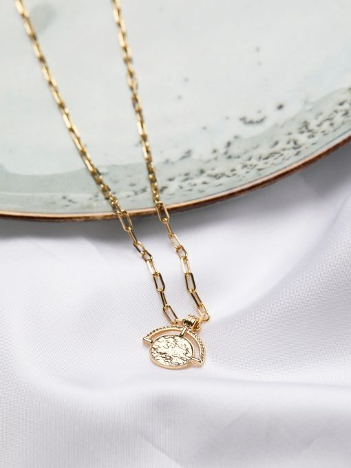 Add a touch of elegance to any outfit. With its stunning design, this disc gold toned necklace is the perfect accessory to elevate your style, whether dressed up or down.