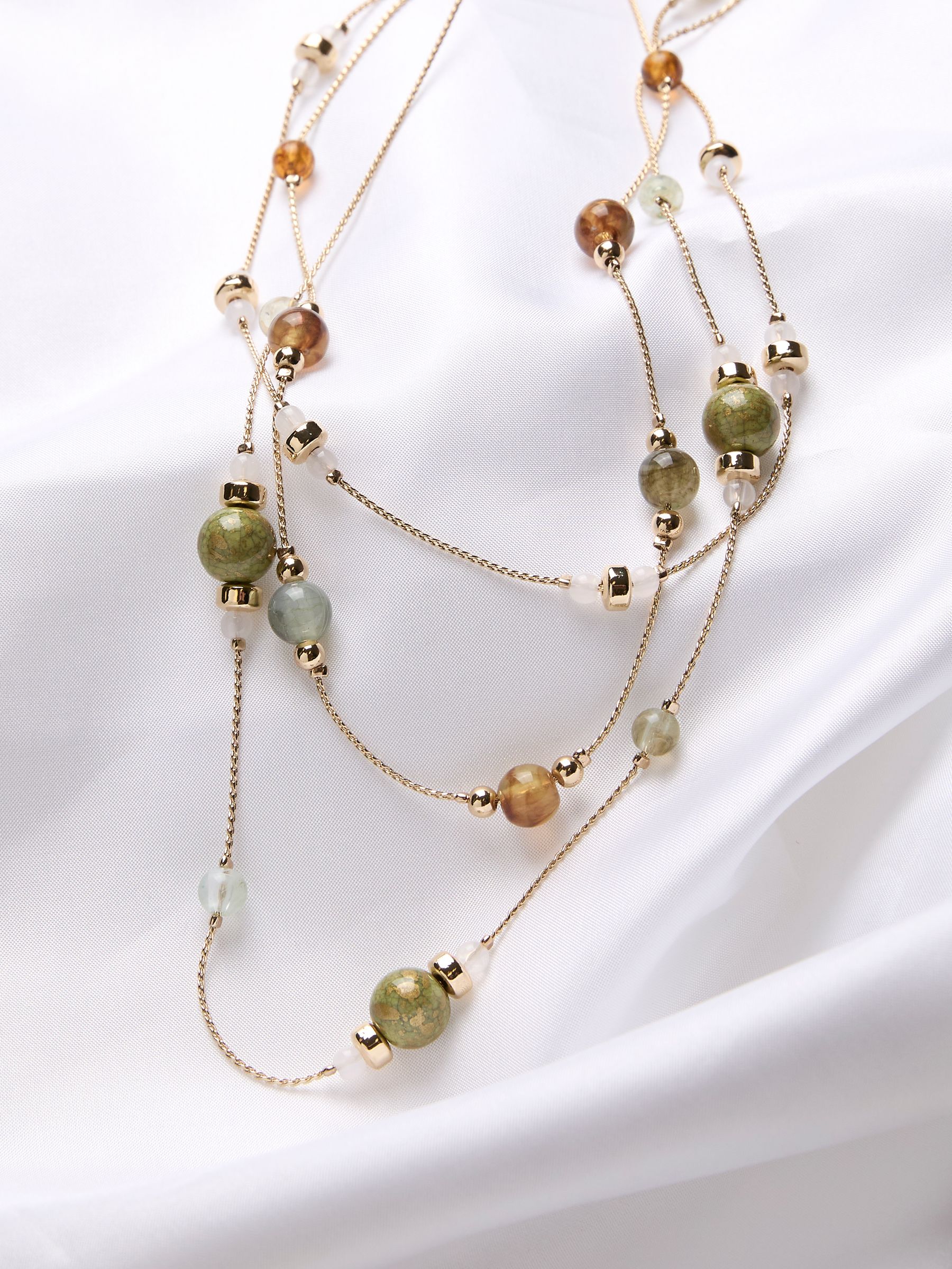 Add a touch of elegance to any outfit. With its stunning design, this bead layered necklace is the perfect accessory to elevate your style, whether dressed up or down.