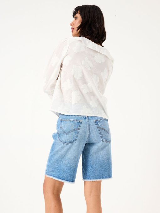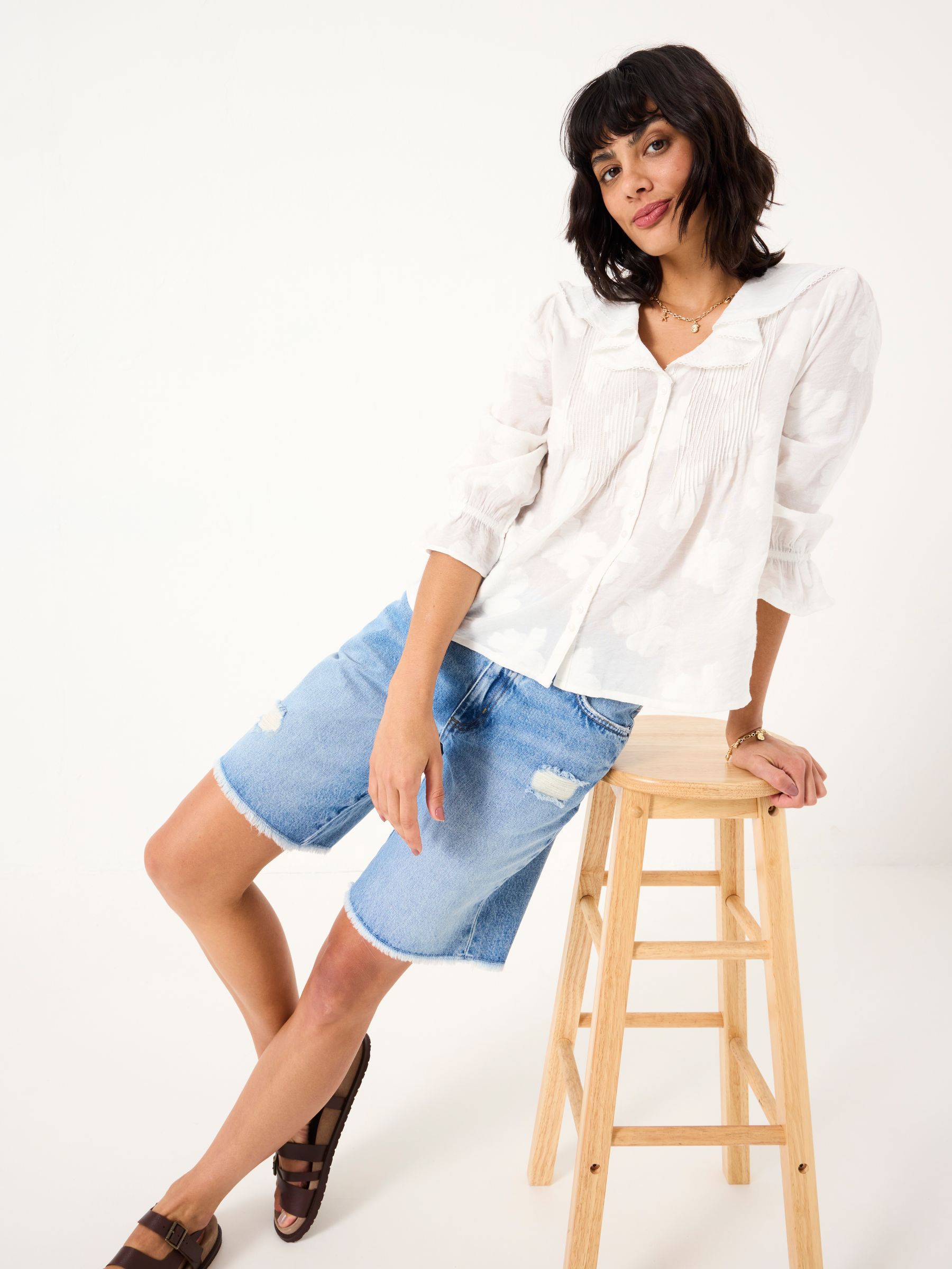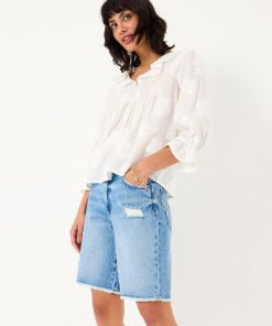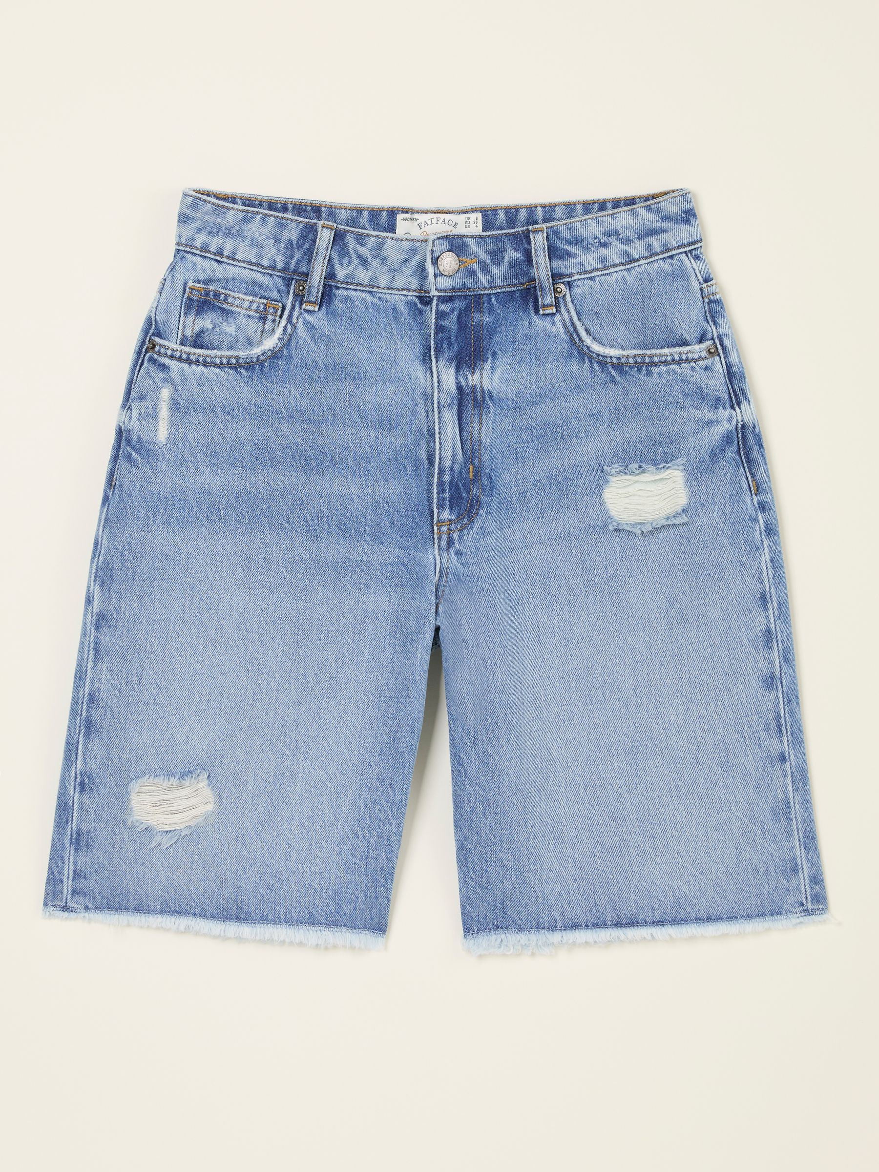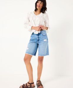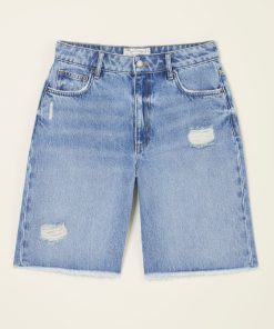Our long denim shorts are the ultimate staple shorts for all your summer plans. Featuring a flattering fit, a light blue wash and a distressed details, pair them with a basic t-shirt for weekend strolls, over a bikini for an effortless beach cover up or with a flowy blouse for elegant evenings on holiday. Made with you in mind, they are the ultimate comfy denim shorts that are breathable and easy to wear all day long.Model is 5’9”/175cm and wears UK size 8