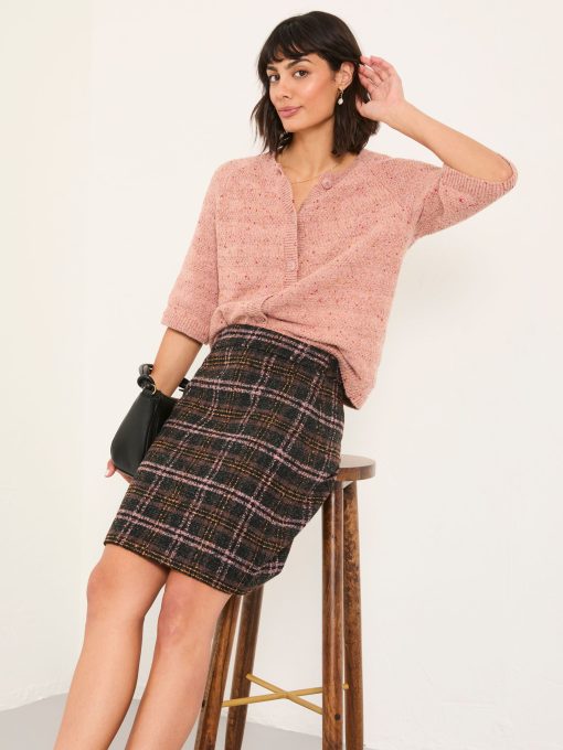Stand out in style with our Jess tweed mini skirt. Made from soft fabrics, this skirt is comfortable and breathable, ideal for dressing up or down. With a textured tweed feel, a flattering shape and length, it is the perfect staple piece for your wardrobe. Wear on office days with tights and a blouse or to evening drinks with heels, this skirt is versatile and easy to wear for all occasions.Model is 5’9”/175cm and wears UK size 8 Long Regular waistband to hem 18" / 46cm.