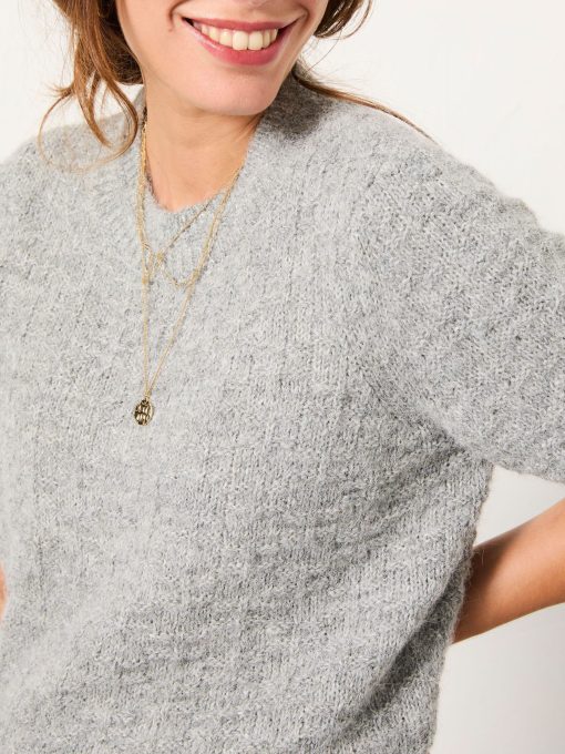 Stay effortlessly chic and comfortable in our Keira fluffy short sleeve knitted t-shirt. Crafted from a soft, textured knit, this tee offers a gentle, cosy feel with a lightweight touch – perfect for layering or wearing on its own. The short sleeves and relaxed fit make it ideal for transitional weather, adding a subtle yet stylish texture to your everyday wardrobe.Model is 5’8”/173cm and wears UK size 8