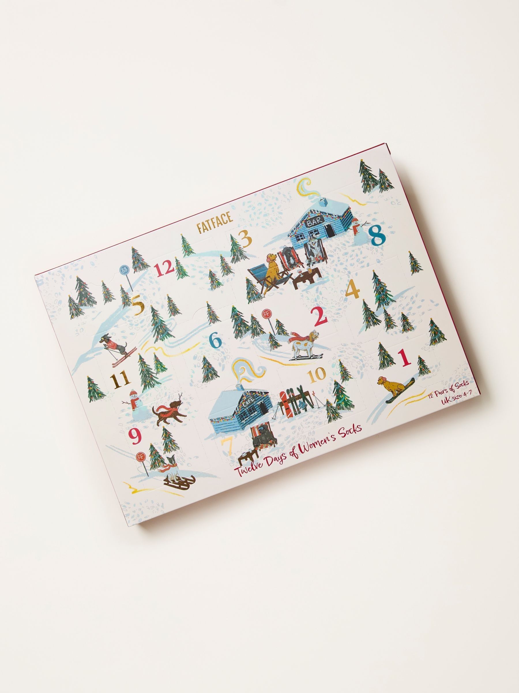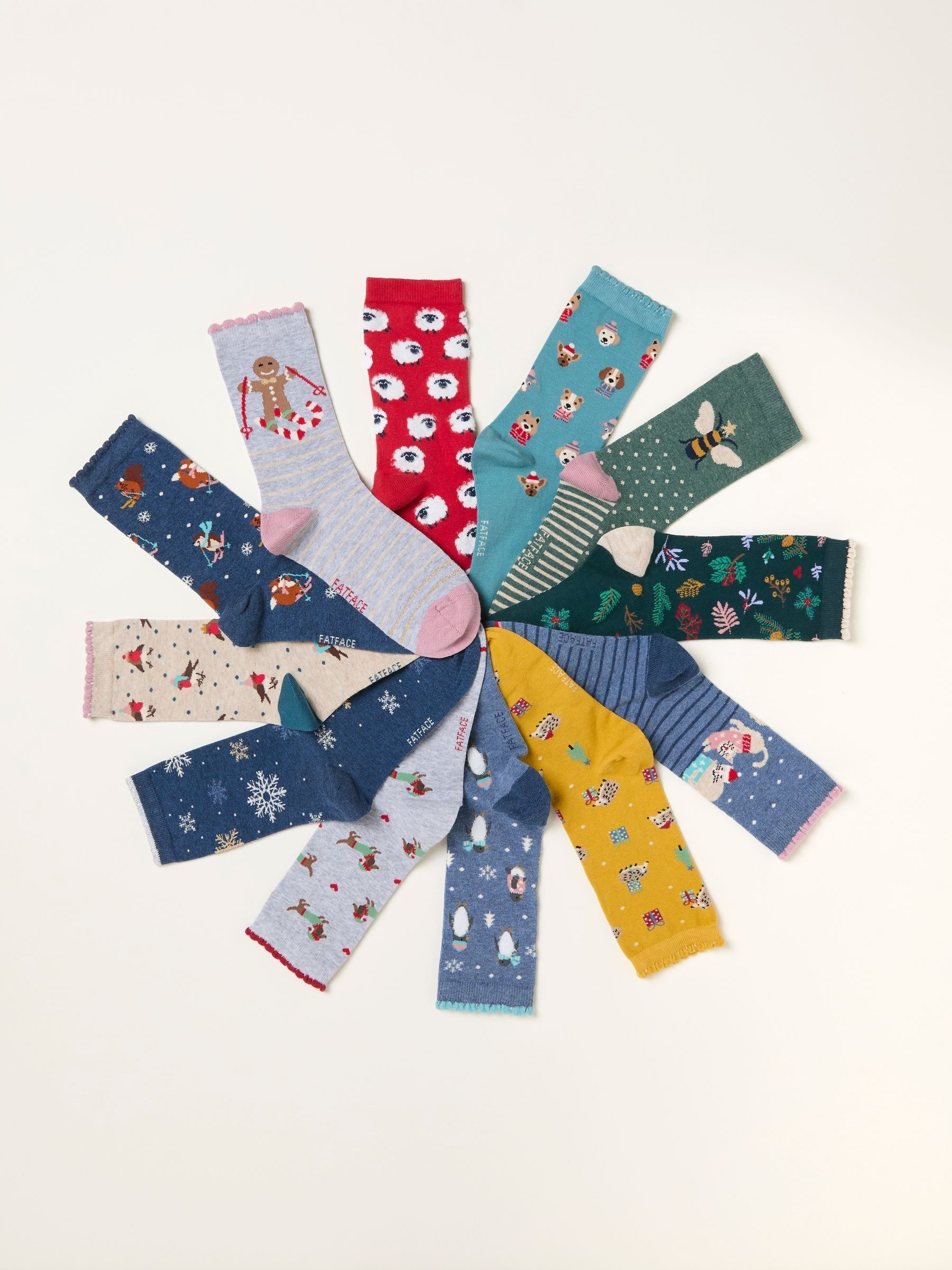 Countdown to Christmas in style with the FatFace 12 Days of Socks advent calendar. A new pair each day from patterns to fun characters, made from soft fabrics for all day comfort this Christmas season.
