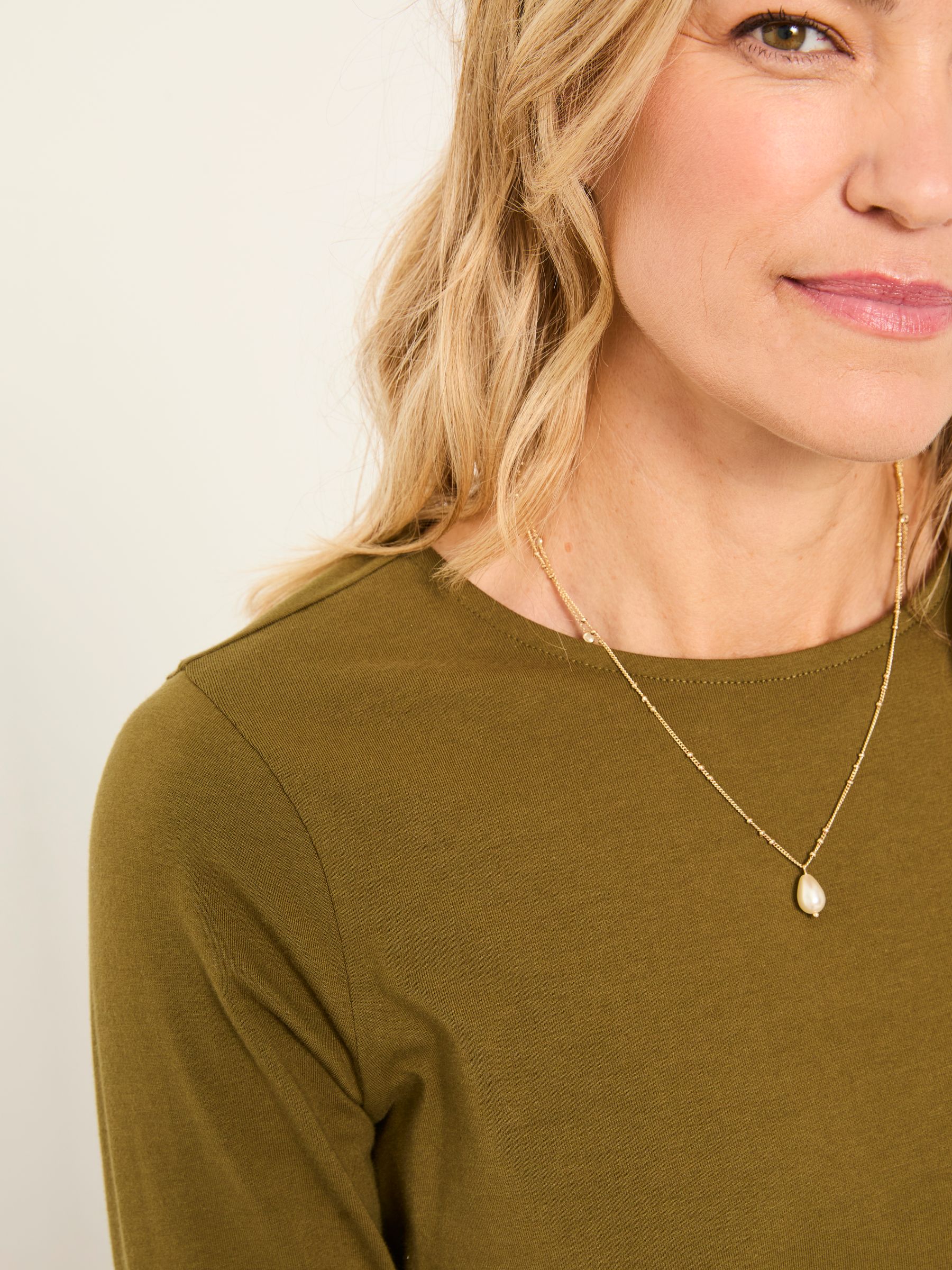 You can never have too many wardrobe essentials, and our Nell long sleeve top is here to elevate yours. It is soft with a fitted feel for maximum comfort, it’s the perfect addition to your everyday lineup. Pair it with denim jeans for a casual weekend stroll, layer it with a jacket on cooler days or dress it up with a skirt. The classic crew neck and long sleeves add a classy touch to any look, making it an effortless way to upgrade your style.