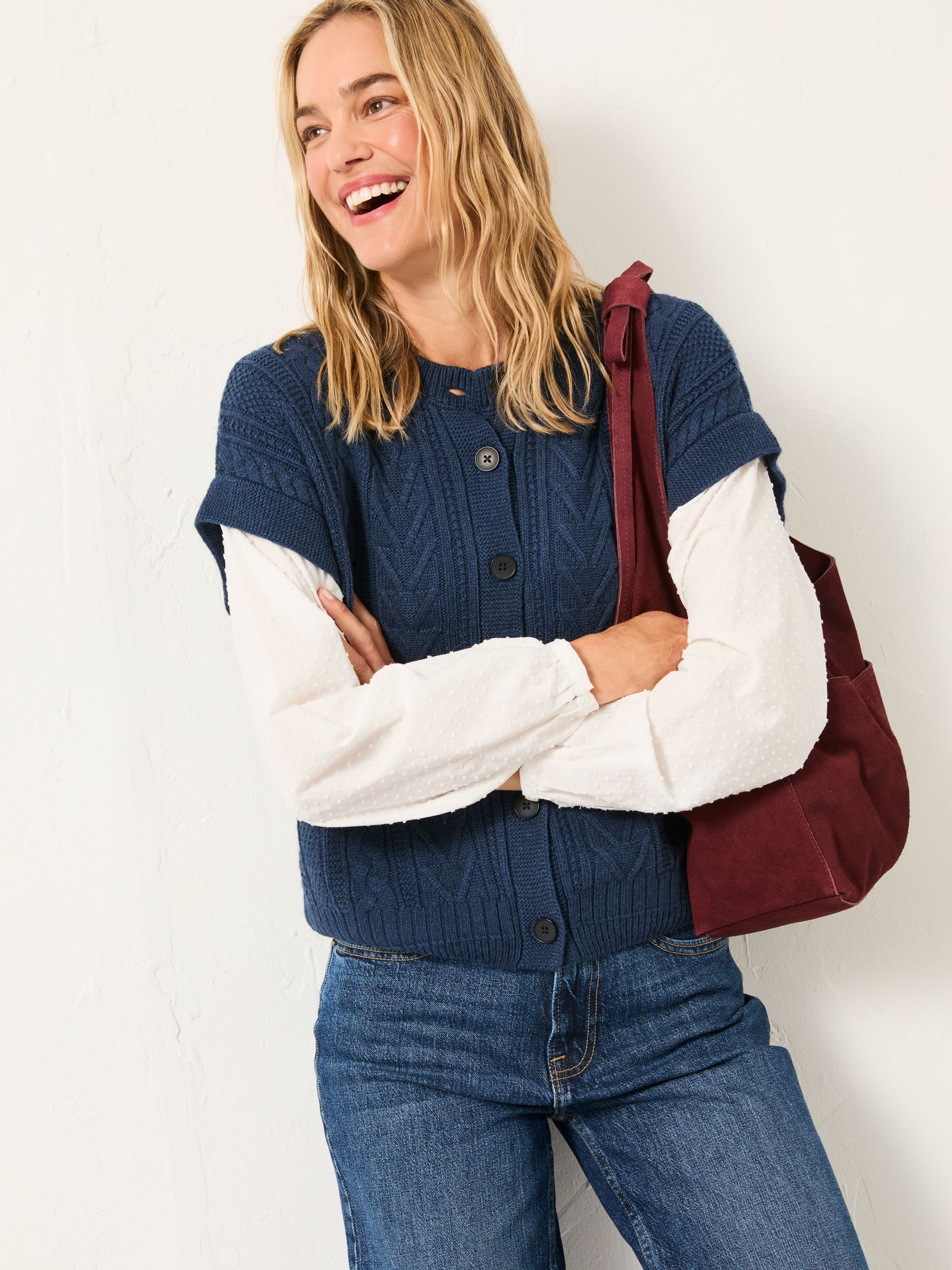 Stay stylish and cosy all day long in our Odette 2 in 1 knitted jumper, featuring long sleeves layered underneath, chunky buttons, and a cable knit design. Crafted from a soft fabric blend, this jumper is comfortable and ready to wear with all your favourite outfits. Whether you dress up with a skirt or pair with a staple pair of denim jeans for everyday wear, our Odette jumper will be your new favourite cosy piece.