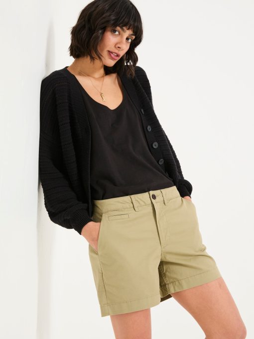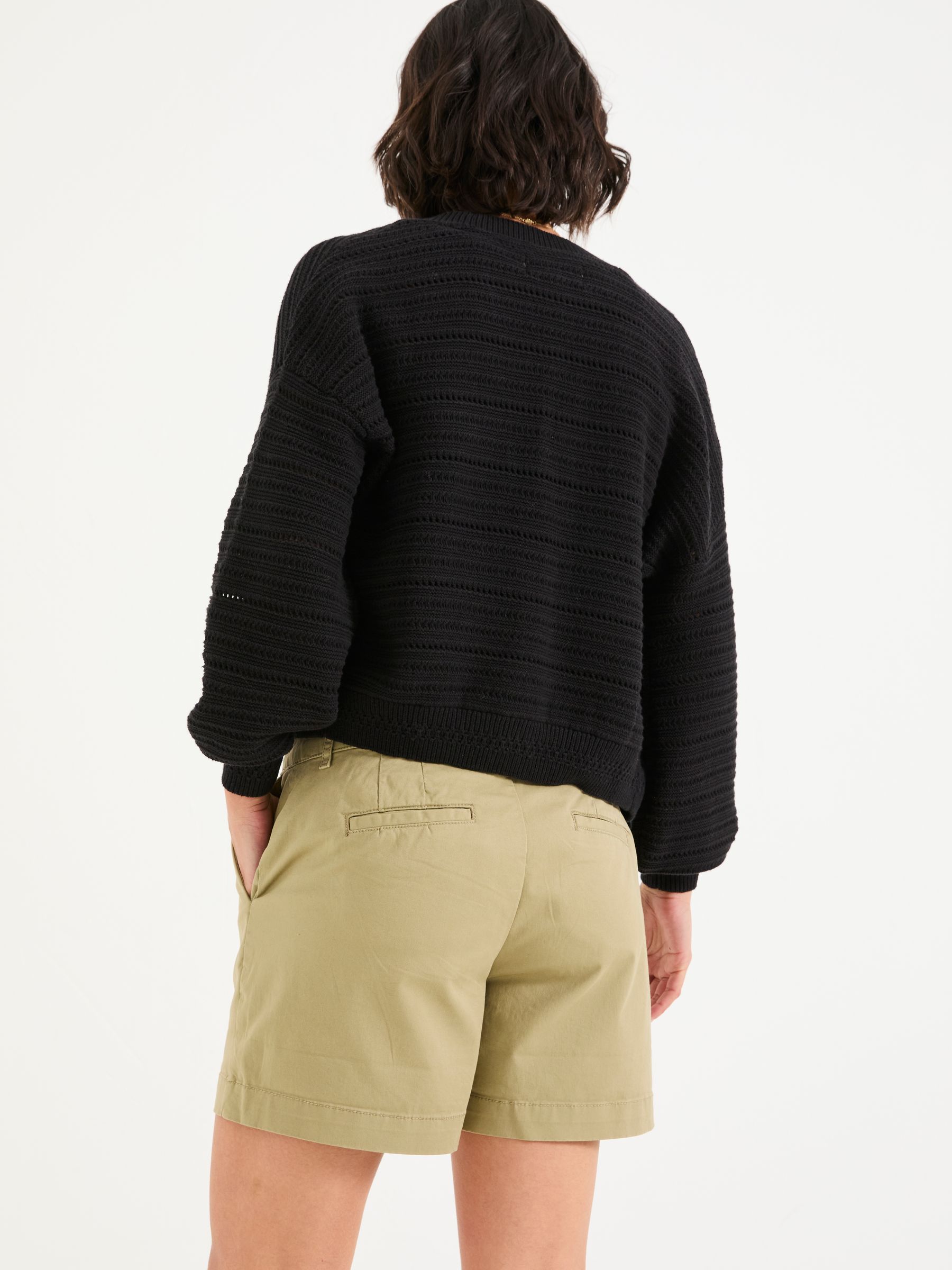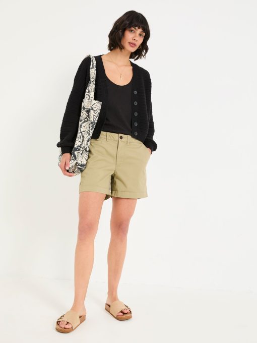 Made with soft, breathable cotton with a hint of stretch, these relaxed chino shorts are an essential for the warmer months. They’re practical too, with side and back pockets for all your belongings and the comfortable fit makes them perfect for all day adventures. Complete the look with an oversized shirt and sneakers.Model is 5’9”/175cm and wears UK size 8Regular inside leg length 4.5" / 12cm.