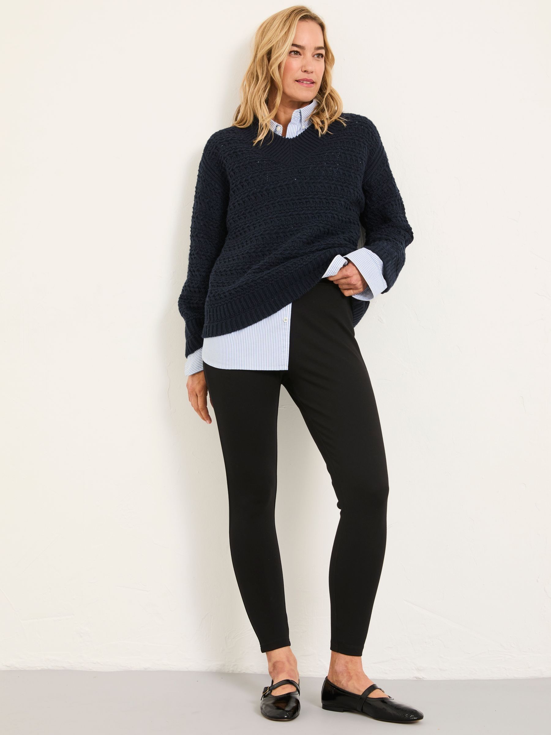 These high-rise leggings offer a sleek and comfortable fit with just the right amount of stretch for all-day comfort. Designed to move with you, they’re perfect for workouts, lounging, or layering under your favourite looks. Smooth, sculpting, and endlessly versatile – your new go-to pair.