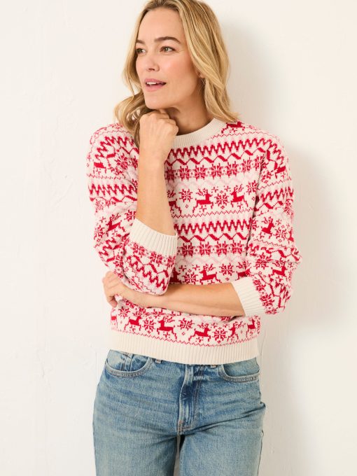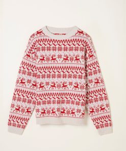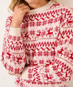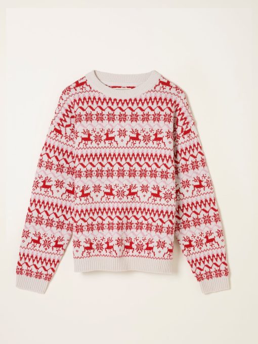 Stay stylish and cosy all day long this festive season in our Renee reindeer knitted jumper, featuring a ribbed high neck, ribbed cuffs and waistline, a reindeer fairisle design, and a loose fit. Crafted from a soft fabric blend, this jumper is comfortable and ready to wear with all your favourite outfits. Whether you dress it up with a skirt or pair with a staple pair of denim jeans for everyday wear, our knitted jumpers will be your new favourite cosy piece.