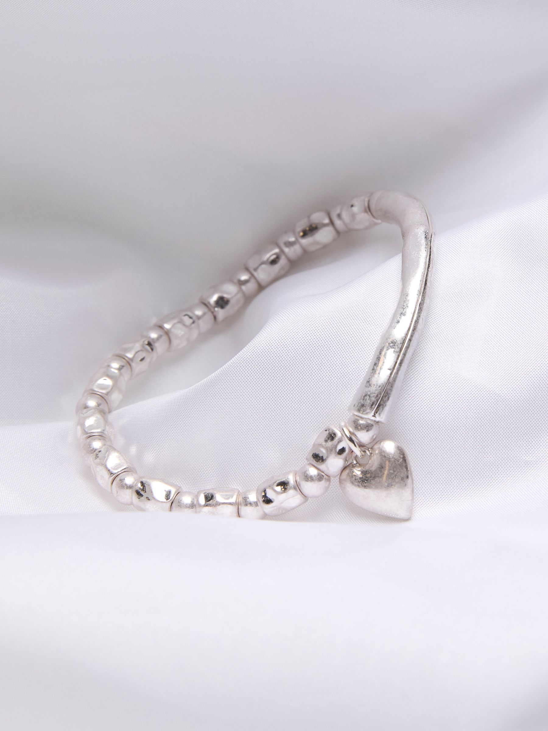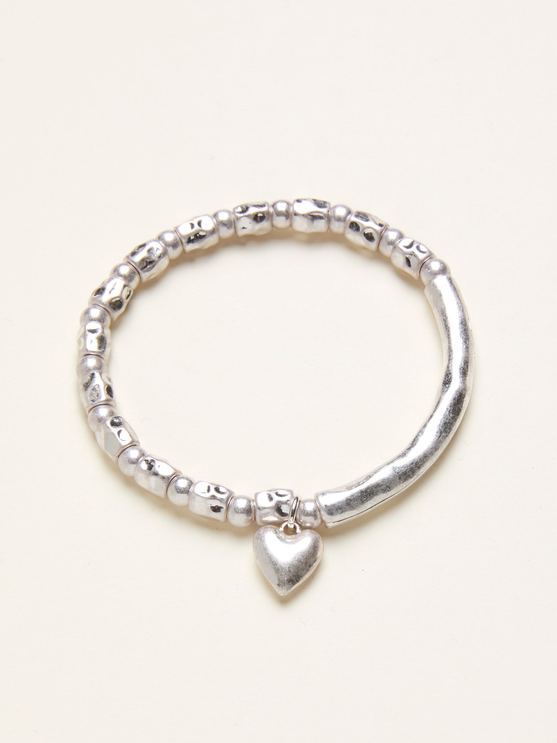 Fat Face Women’s Silver Tone Heart Stretch Bracelet