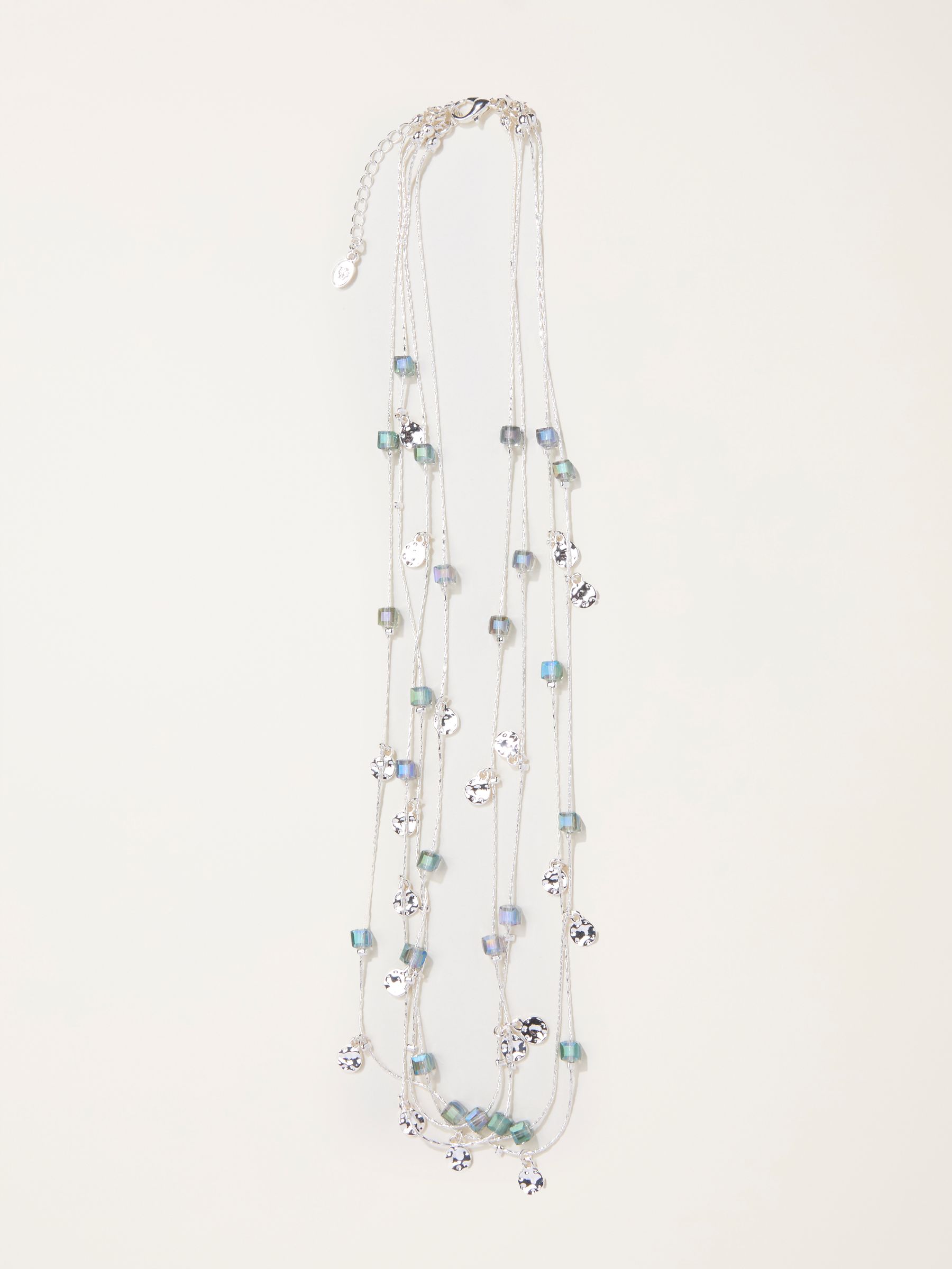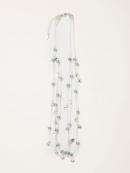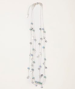 Make a statement with our necklaces. It features a layered silver toned look with blue beads, perfect for elevating your look from day to night.