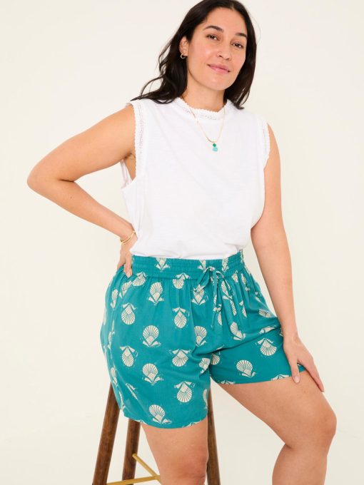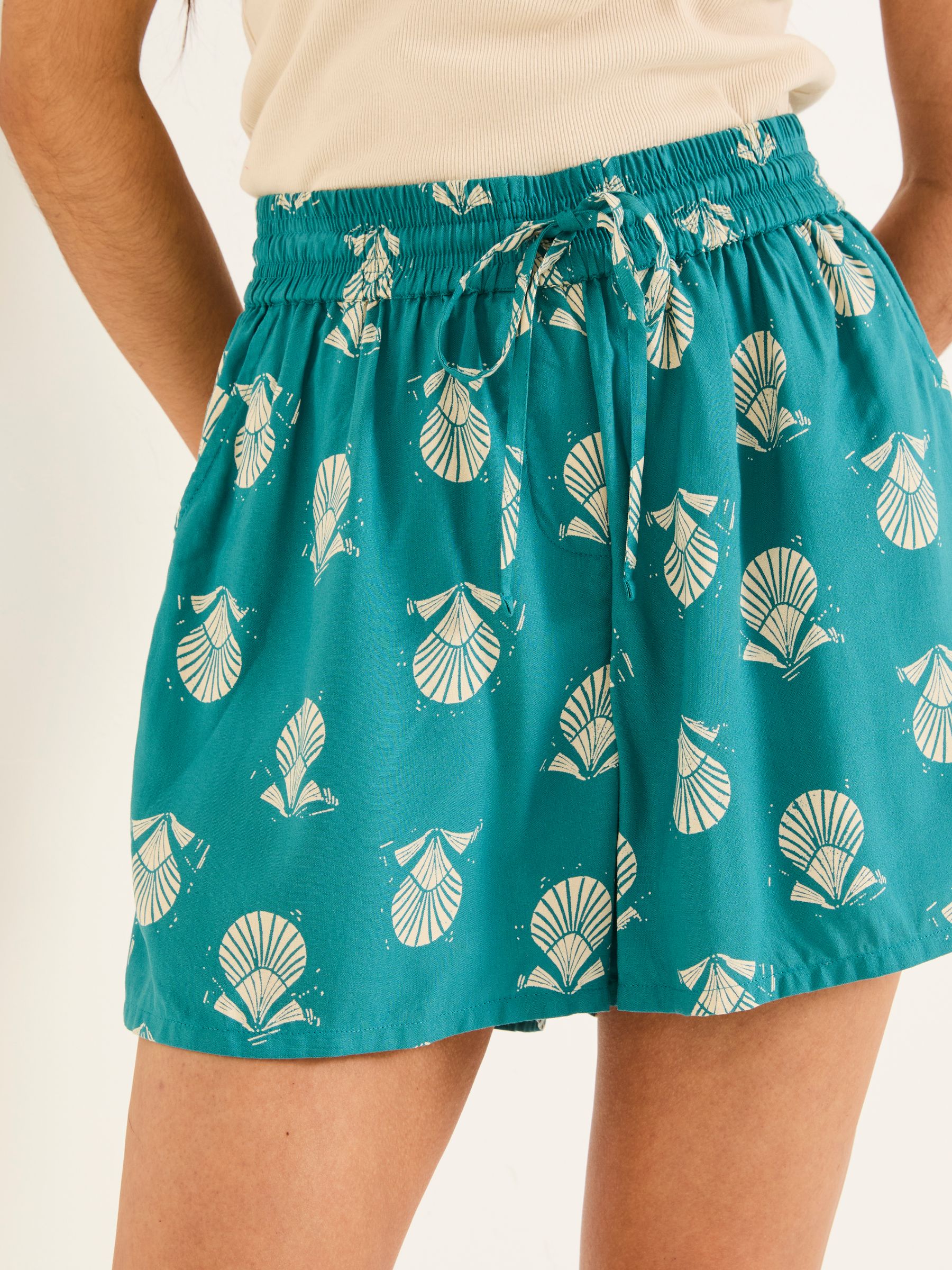 Our flippy shorts are the ultimate summer essential, whether you need a lightweight bikini cover-up or a stylish pair for dinner and drinks on vacation. Crafted from soft, breathable 100% Viscose, these shorts feature a drawstring and shirred waist for a comfortable, adjustable fit. With their loose silhouette and vibrant shell print, they’re the perfect choice for sunny beach days.Model is 5’8”/173cm and wears UK size 18
