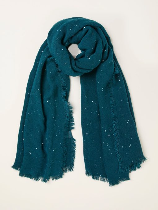 Fat Face Women’s Teal Blue Sequin Scarf