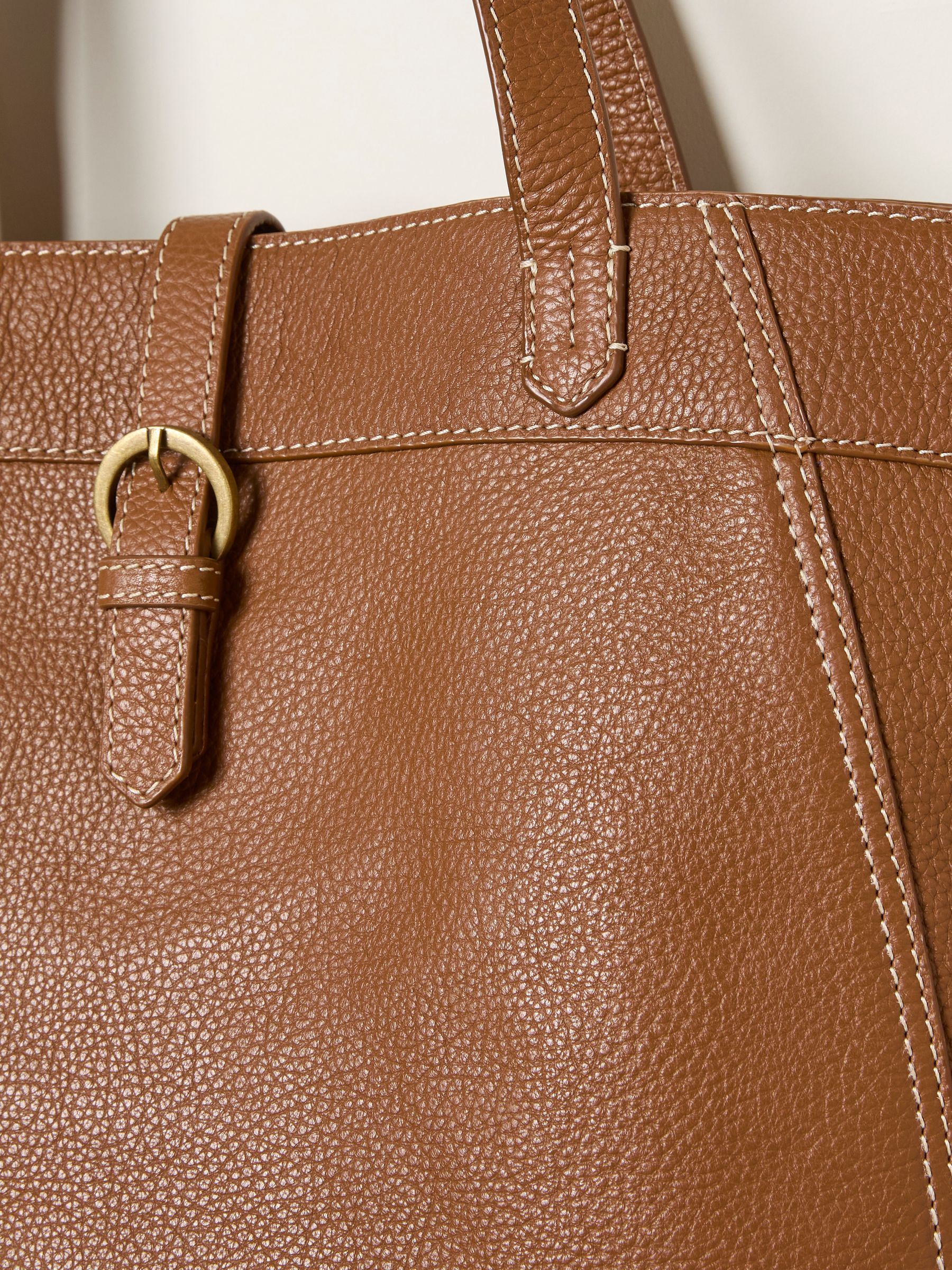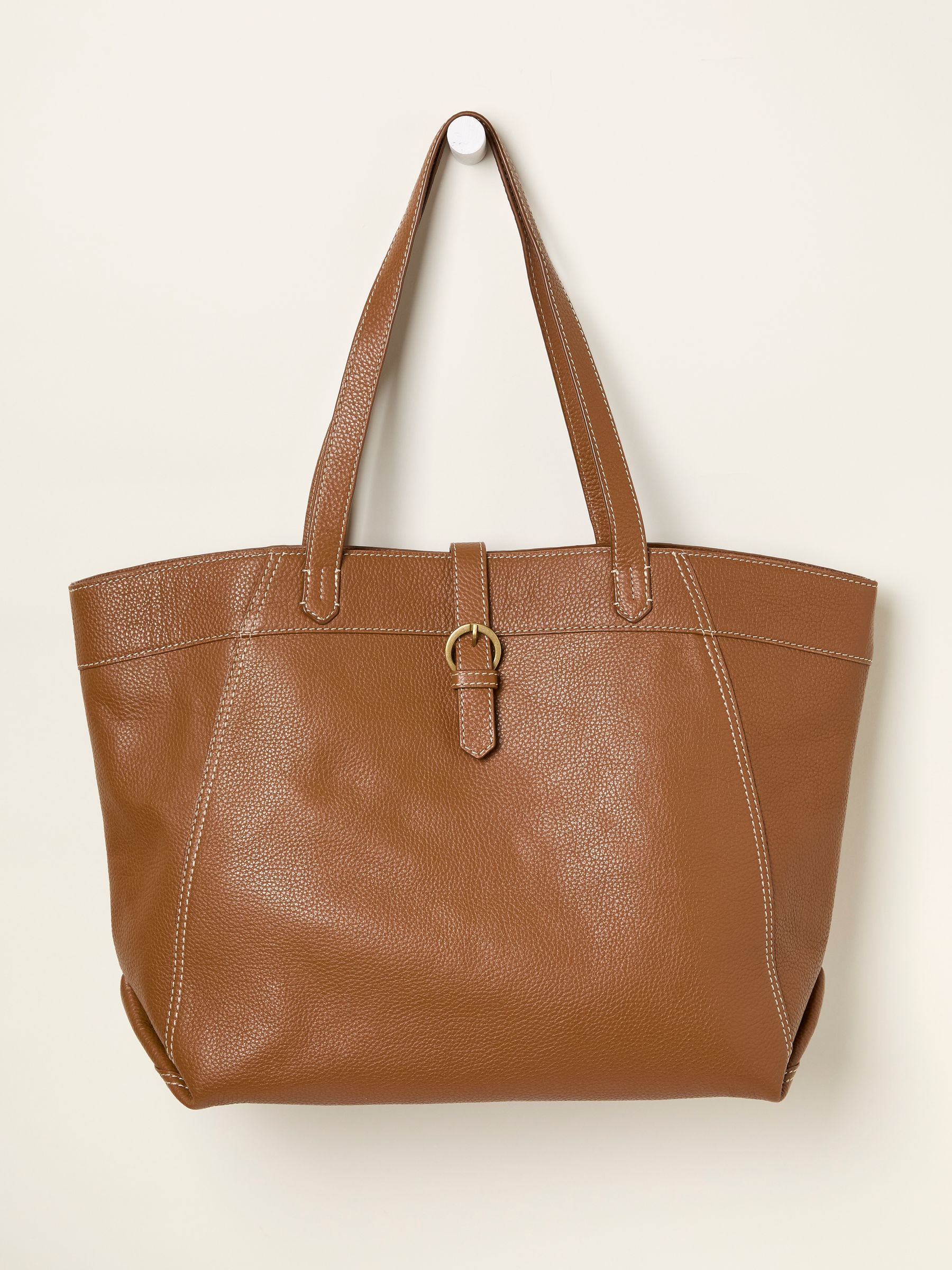 Our bags are perfect for everyday use, from weekends to weekdays. Made out of 100% leather, lots of storage and a buckle fastening, this bag is practical and is a must have to elevate any outfit – from your weekly food shop to days in the office.Model is 5’9”/175cm and wears UK size 8Height 34cmWidth 51cm